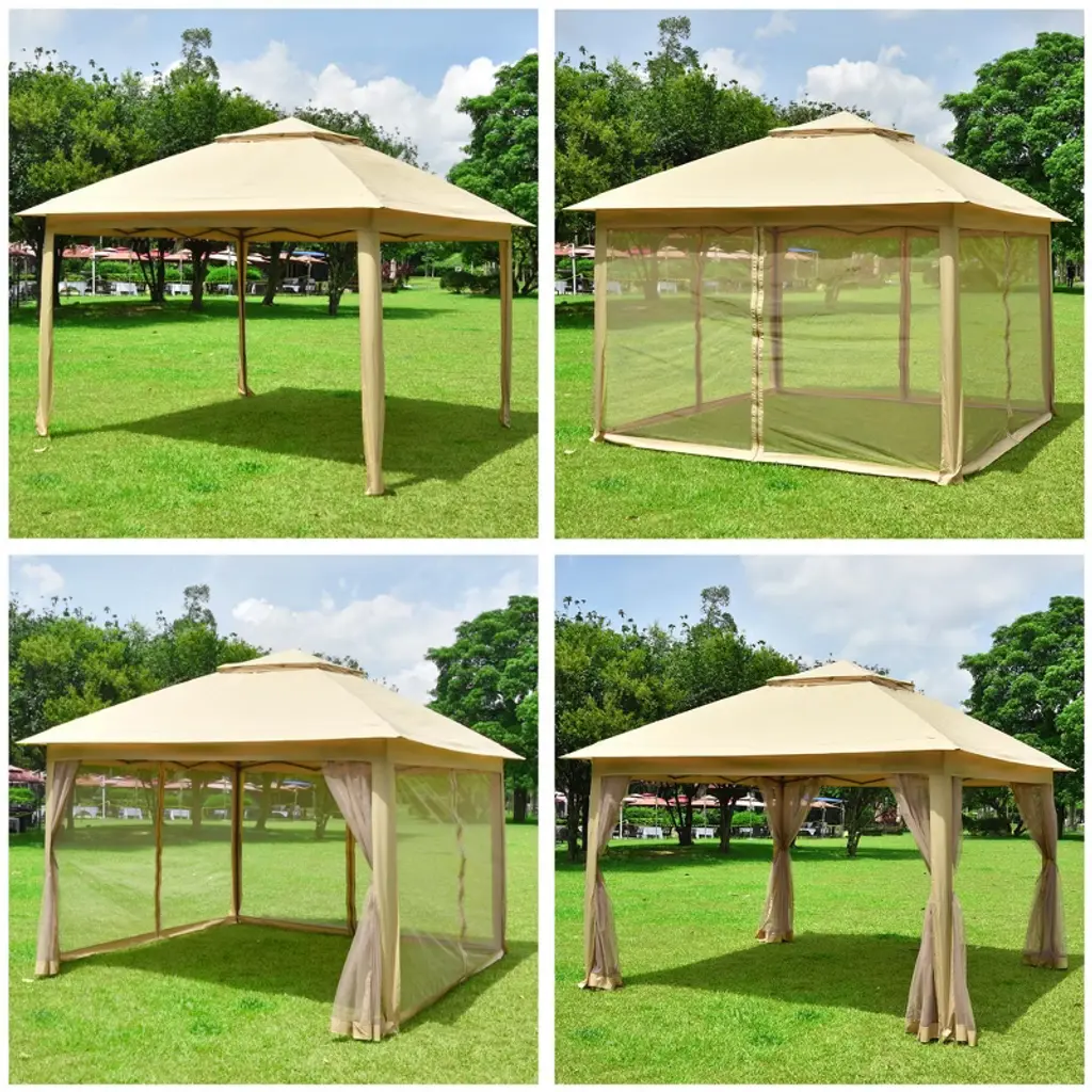 Yescom 11x11ft Pop-up Gazebo Tent With Mesh Sidewall Canopy Shelter Outdoor Home Patio Beige