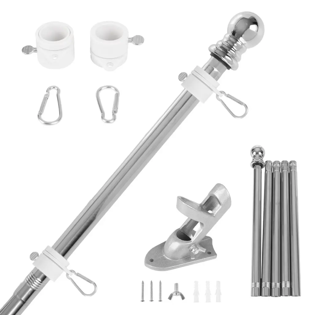 Yescom 2.48" D. Flag Pole Tire Mount Portable Metal Tailgate Camping 20ft 25ft 30ft Adjustable Flagpole Holder Silver