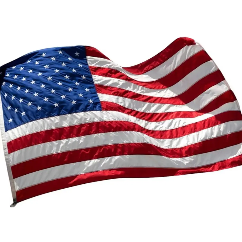 Features:- Show Your American Proud - 3x5ft US Flag, a glorious symbol for showing your patriotism, flying Old Glory to present your respect for the spirit of freedom and democracy- Durable Material - 210D Polyester Oxford fabric features long lifespan; Grommet is made of aluminum with golden coating for rust resistance- Fine Craftsmanship - Sewn stripes show unique layered texture and fine workmanship; Double stitched edge and 4 rows of stitching on fly hem to prevent being torn apart, tough enough for daily using- Easy to Install - Upgraded thicker and larger grommet features 1/2" inner diameter, more space for installing to flagpole with carabiner or hanging on wall with straps- Wide Application - Perfect for flying at backyard and patio, also for public facilities, like school and city hall; An essential decoration for Independence Day, President’s Day or Election Day, to raise and wave at parade- Easy Assembly & Maintenance - Hanging ropes included for convenient installation by simply connecting stainless steel D-shape rings and the mounting points; Foldable design for space-saving storage, washable sail also for easy cleaning,- Durable in Use - Triple stitched seam reinforces the edge to prevent fraying and ripping; Curved rectangle shape helps the sail to keep tight; Heavy-duty nylon ropes included; Anti-ager composition added for long time service; 5-year warranty for quality issueSpecifications:- Overall Dimension(LxW): 59 1/16" x 35 7/16" (150 x 90 cm)- Material: 210D Polyester Oxford Fabric- Grommet Outer Diameter: 13/16" (2 cm)- Grommet Inner Diameter: 7/16" (1.15 cm)- Net Weight: 0.42 Lbs (0.19 kg)- Fabric Weight: 185 GSM- Net Weight: 4.5 Lbs (2.04 kg)Package Contents:- 1x US Flag