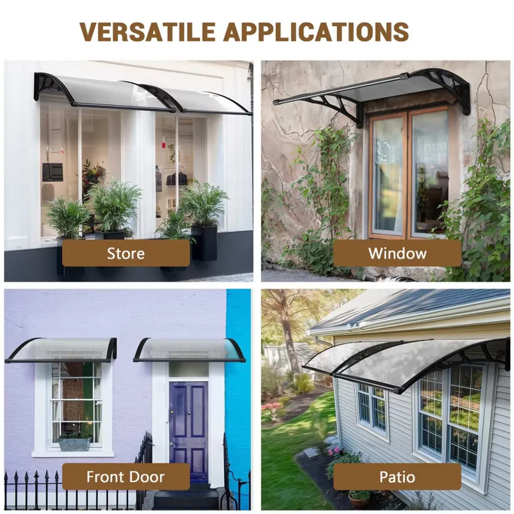 Yescom 40"x40" Door Window Awning Whole One-piece Polycarbonate Uv30+ Outdoor Rain Snow Protection Patio White Board White Board & Black Bracket