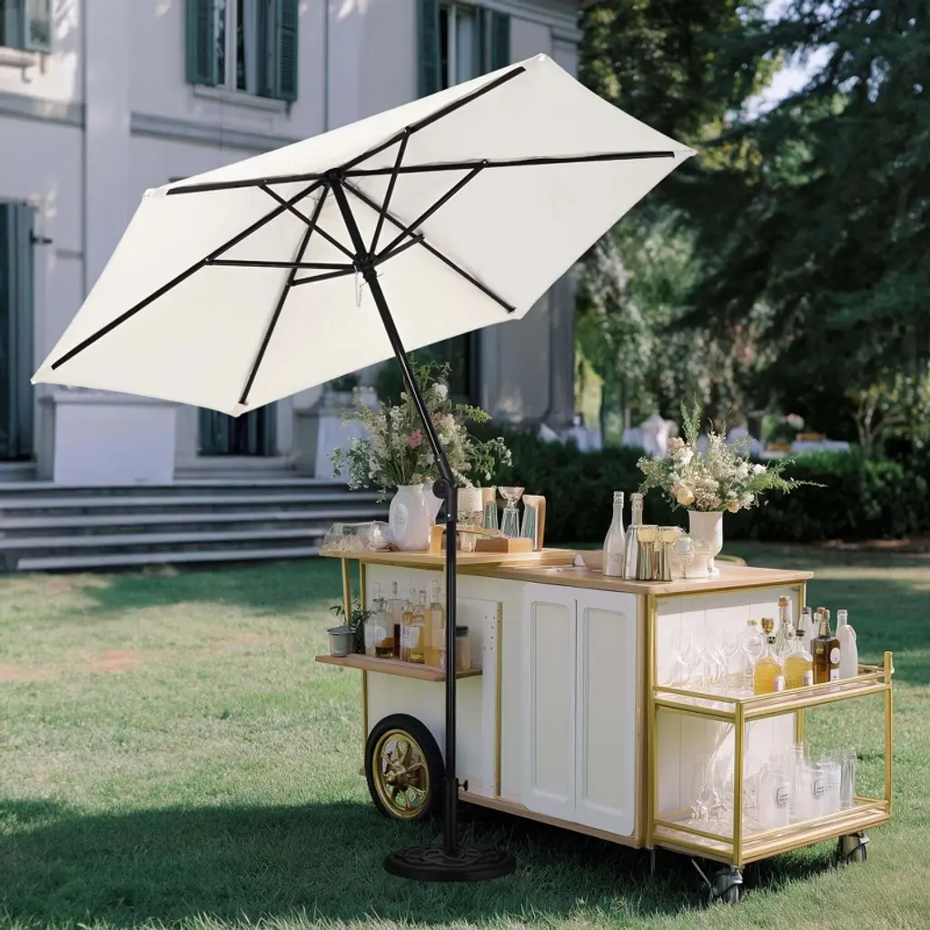 Yescom 7.5ft Outdoor Patio Umbrella With Base Included Heavy Duty Weighted Stand Holder With Scale Tilt Sunshade Garden For Deck Market Pool Ivory