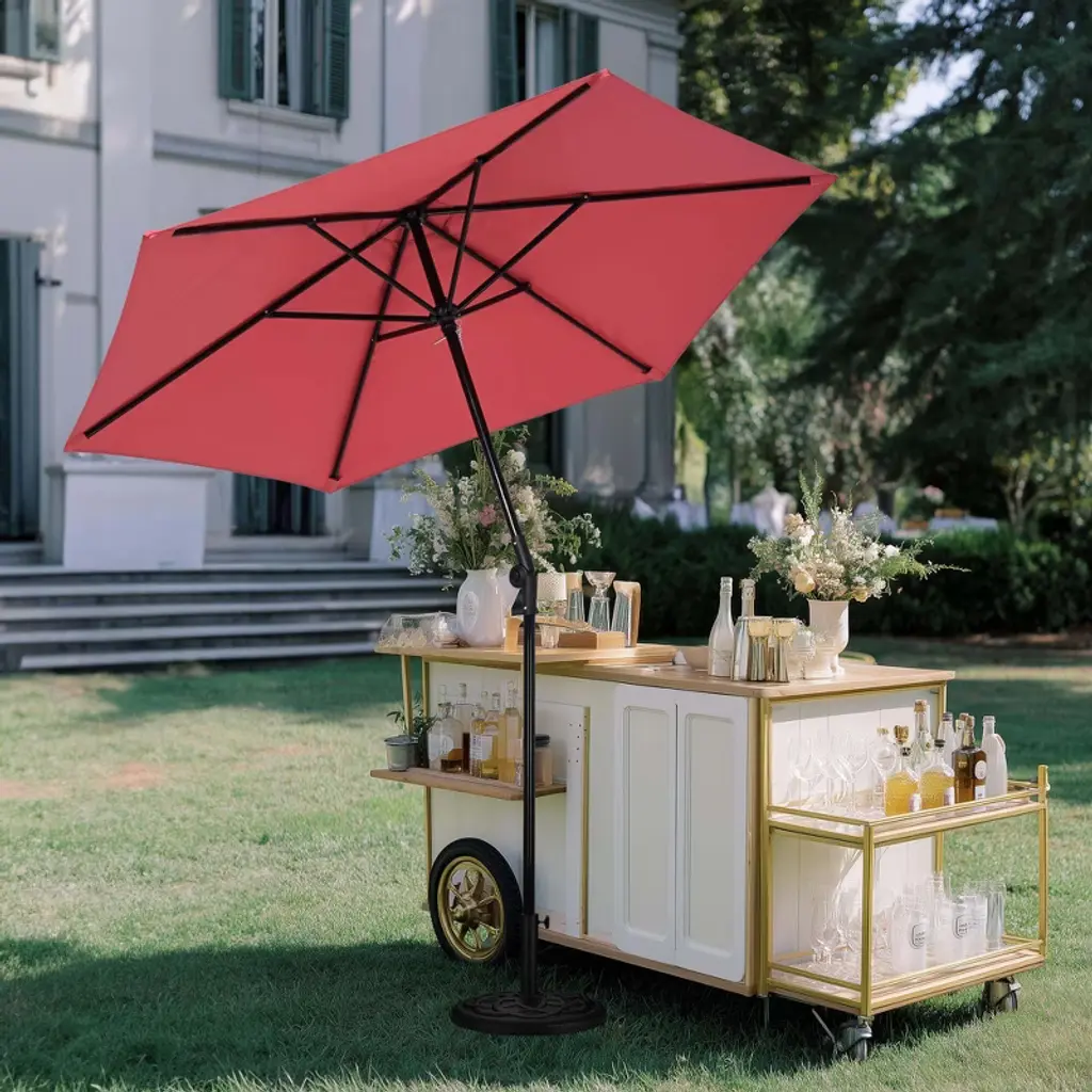 Yescom 7.5ft Outdoor Patio Umbrella With Base Included Heavy Duty Weighted Stand Holder With Scale Tilt Sunshade Garden For Yard Deck Market Pool Red