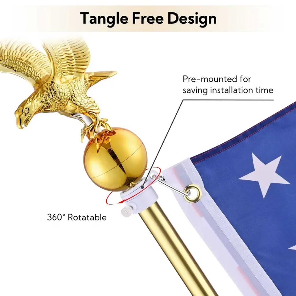 Yescom 8Ft Indoor Flag Pole Kit Eagle Topper Aluminum Gold Pole W/ Base Us Flag 4 Pack
