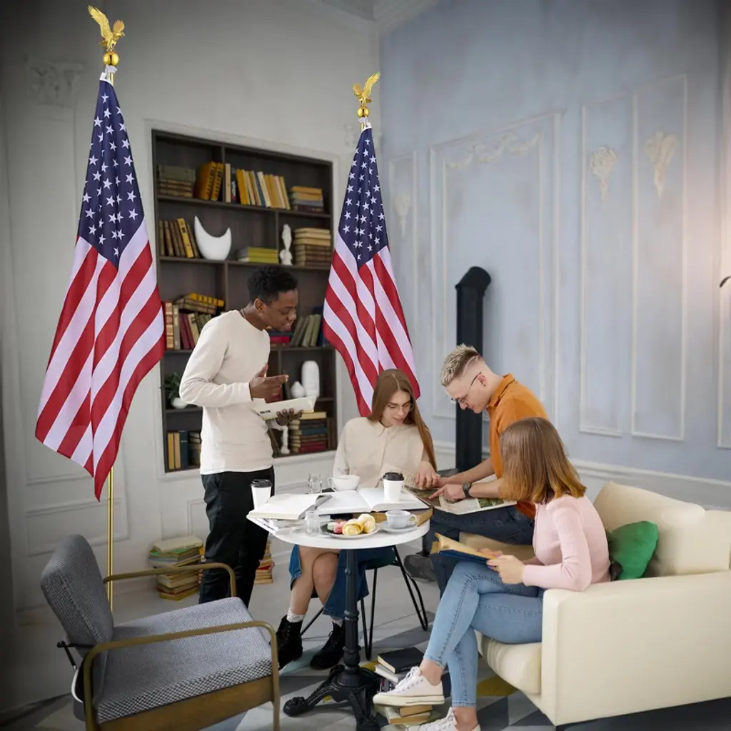 Yescom 8Ft Indoor Flag Pole Kit Eagle Topper Aluminum Gold Pole With Base 3X5ft Us Flag For Office School City Hall 2Pcs