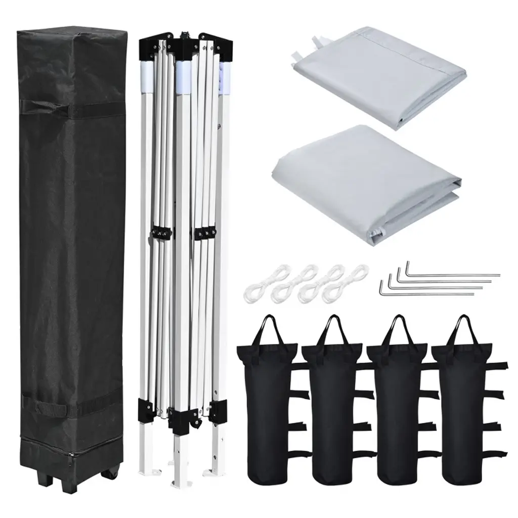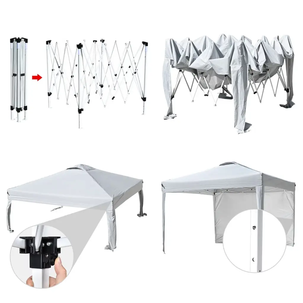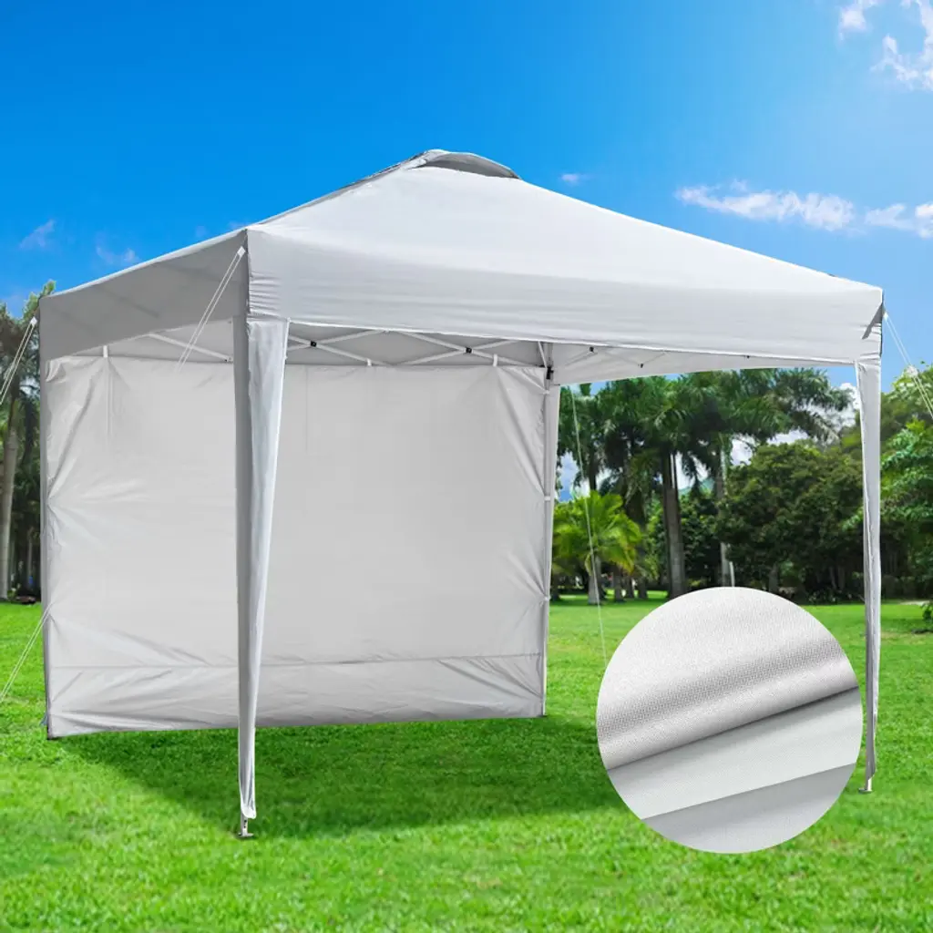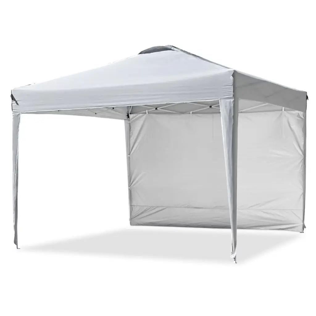Features:- Portable - InstaHibit 10x10 ft Pop-up Canopy Tent with Sidewall comes with a foldable frame and detachable top canopy and sidewall for easy storage, along with a carrying bag with handle and pulleys for easy transportation, allowing you to bring it along with you on all your outdoor activities- Easy & Fast Installation - Features a one-piece frame for easy tool-free assembly and pinch-proof buttons on 4 legs for 3-level height adjustment, simply extending the frame, covering the cover, adjusting the tent height, then fixing the tent with ropes and ground stakes to complete installation in 10 minutes- UV50+ Protection Canopy - Constructed of silver coated oxford fabric which features UV50+ protection to block 99% harmful UV ray and water resistance of up to 800mm, allowing you to enjoy the outdoors in summertime- Stable & Comfortable - Comes with 4 sandbags, ground stakes and tie ropes for fixing the tent on the ground, along with ventilation holes on the top to improve air circulation and reduce external wind pressure against the tent for stability and comfort, creating a cozy and relaxing interior space- Wide Application - This popup tent is a perfect sunshade for you to enjoy various outdoor activities, like family gatherings, parties, beach vacations, camping, picnics, etc., and ideal for using at patio, backyard, front yard, lawn, garden and beachSpecifications:- Overall Dimension(LxWxH): 117 5/16" x 117 5/16" x 104 3/4" (298 x 298 x 266 cm / 10x10x8.7 Ft)- Folded Dimension(LxWxH): 6 11/16" x 6 11/16" x 44 7/8" (17 x 17 x 114 cm)- Adjustable Height: 70 1/2", 87 13/16", 104 3/4" (179, 223, 266 cm)- Sand Bag Size(LxW): 16 9/16" x 8" (42 x 20.3 cm)- Roller Bag Dimension(LxWxH): 8 1/4" x 8 1/4" x 45 1/4" (21 x 21 x 115 cm)- Net Weight: 30.97 Lbs (14.05 kg)Package Contents:- 1x Canopy & Frame- 1x Sidewall- 1x Roller Bag- 4x Ropes- 4x Ground Stakes- 4x Sand Bags- 1x ManualNotice: - Please do NOT stretch the legs with violence while adjusting height to protect the frame.