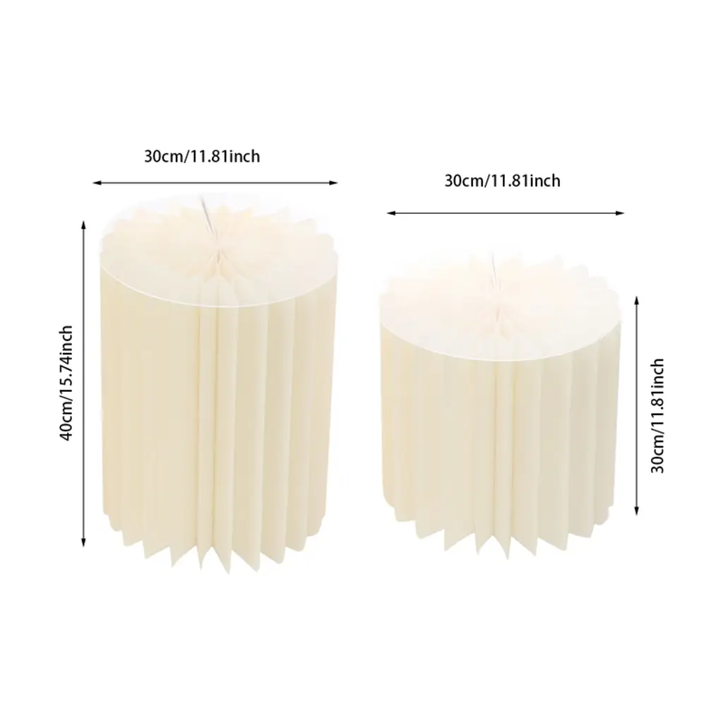 With a distinctive structure and sleek design, our paper column display stands add a decorative touch to weddings and ceremonies. Offering lasting durability, easy storage, simple transport, and reuse, they provide a fabulous platform for showcasing flowers and decor, creating a cozy and romantic ambiance. Specification Material: Paper, PVC Color: Milky White Style: Elegant Shape: Column Mount Type: Free Standing Number of Pieces: 7 Number of Papers(Each Product): 44 Each PVC Panel Thickness: 1.5cm/0.59in Each Product Load-bearing Capacity: About 25kg/55 lbs Product Size(D*H): 30*30cm/11.81*11.81in, 30*40cm/11.81*15.74in Package Included 7* Paper Column Display Stands 7* PVC Panels Note 1. Please check the size carefully before ordering. 2. Please note that decorations such as flowers and cakes are not included in this product. 3. Please note that PVC panels are equipped with protective film on both sides, which has a matte effect before removing and a clear effect after removing. 4. Cardboard flower stands have limited weight capacity, so please do not place overly heavy items on them. 5. Please allow the slight color difference caused by the shooting light and 1-3cm error due to manual measurement, and make sure you do not mind before you order.