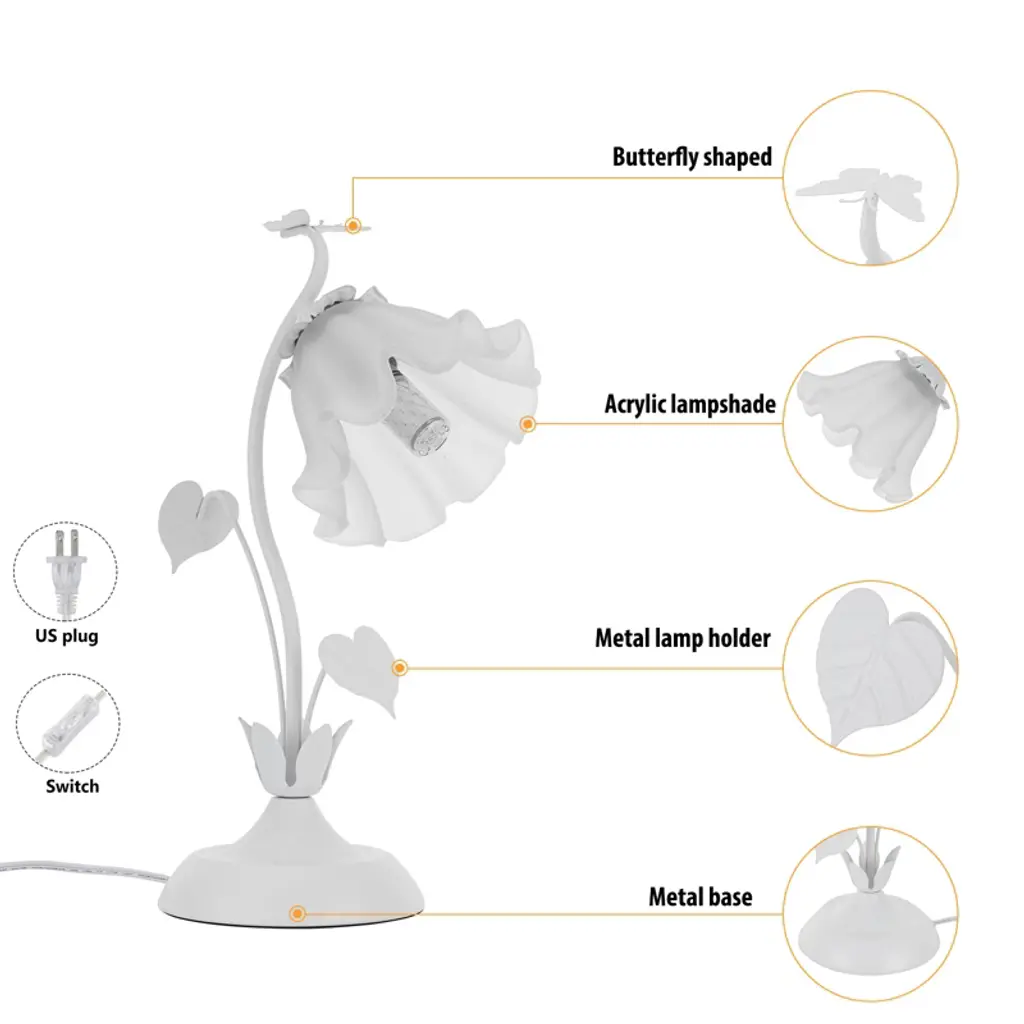 Yiyibyus Flower Shape Table Lamp With White Acrylic Lampshade, Modern Bedside Lamp