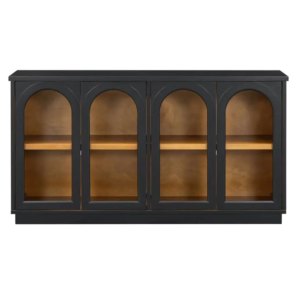 Yoocozz 4-glass-door Arched Cabinet With Adjustable Shelves - Black
