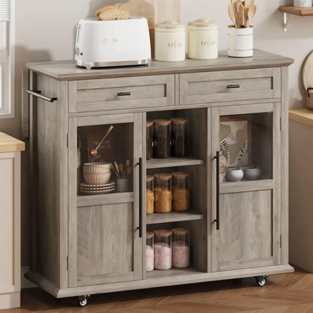 This sideboard cabinet is designed to bring both style and functionality to your space. Featuring adjustable and removable shelves, it easily adapts to store items of different sizes, whether you need to organize dinnerware, electronics, or decorative pieces. A built-in cable hole at the back keeps wires neatly managed, helping you maintain a clutter-free environment. The handleless design enhances its modern, minimalist appeal, while the interior rebound mechanism ensures that the doors open and close smoothly every time. With its thoughtful details and versatile storage options, this cabinet is an ideal addition to any contemporary home.