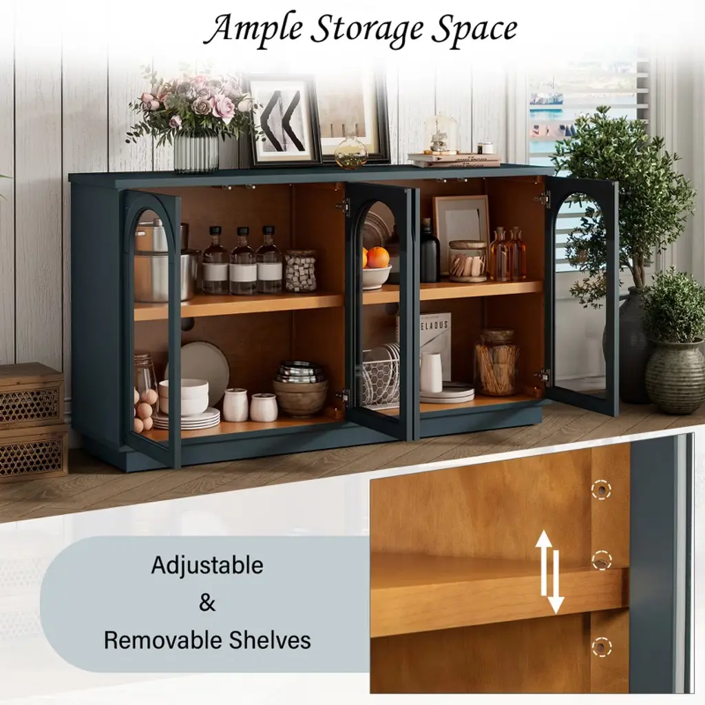 Yoocozz 4-glass-door Arched Cabinet With Adjustable Shelves - Navy