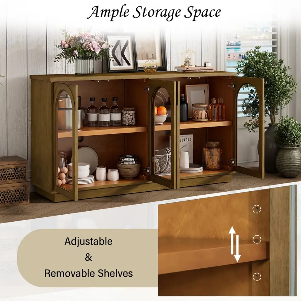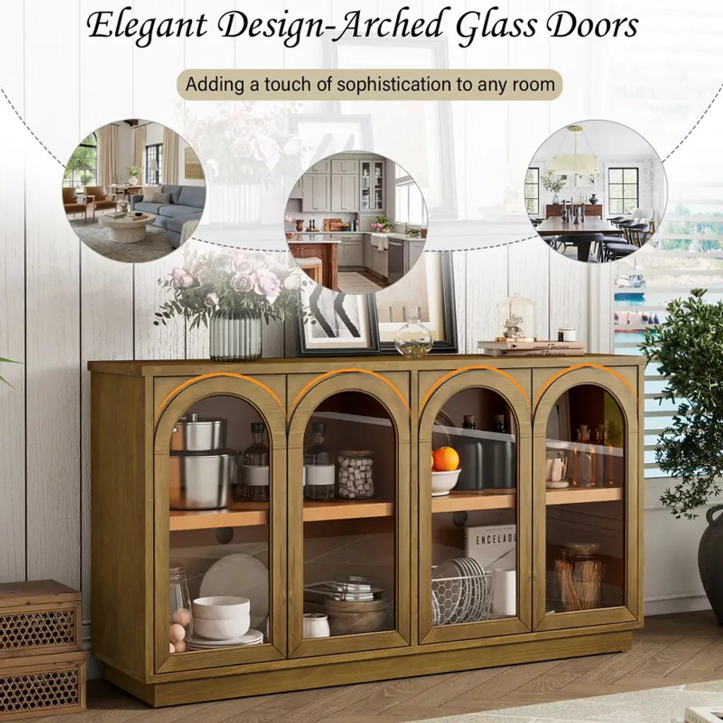Yoocozz 4-glass-door Arched Cabinet With Adjustable Shelves - Old Pine