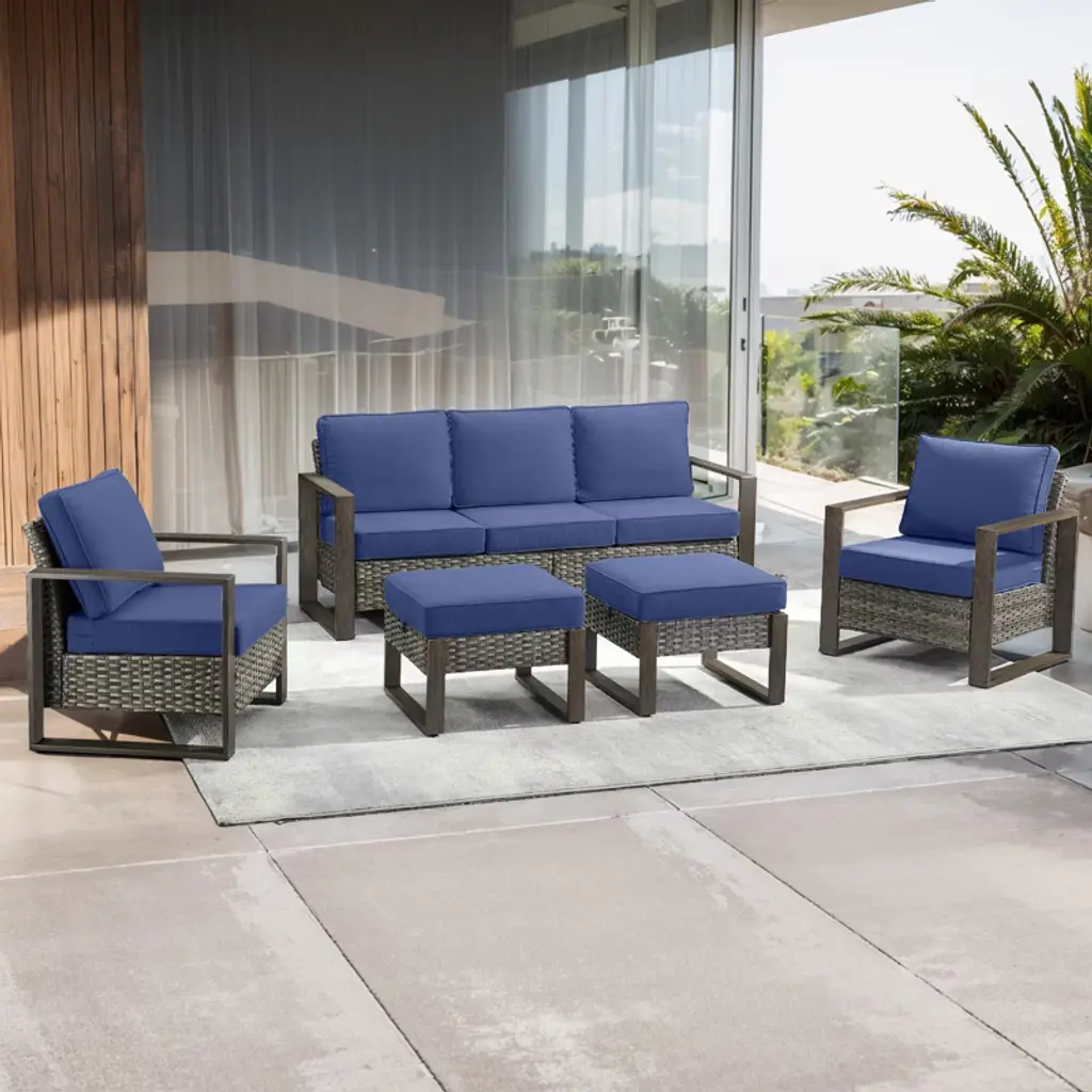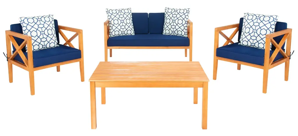Yoocozz 4-piece Patio Seating Set With Wood Table And Legs - Blue