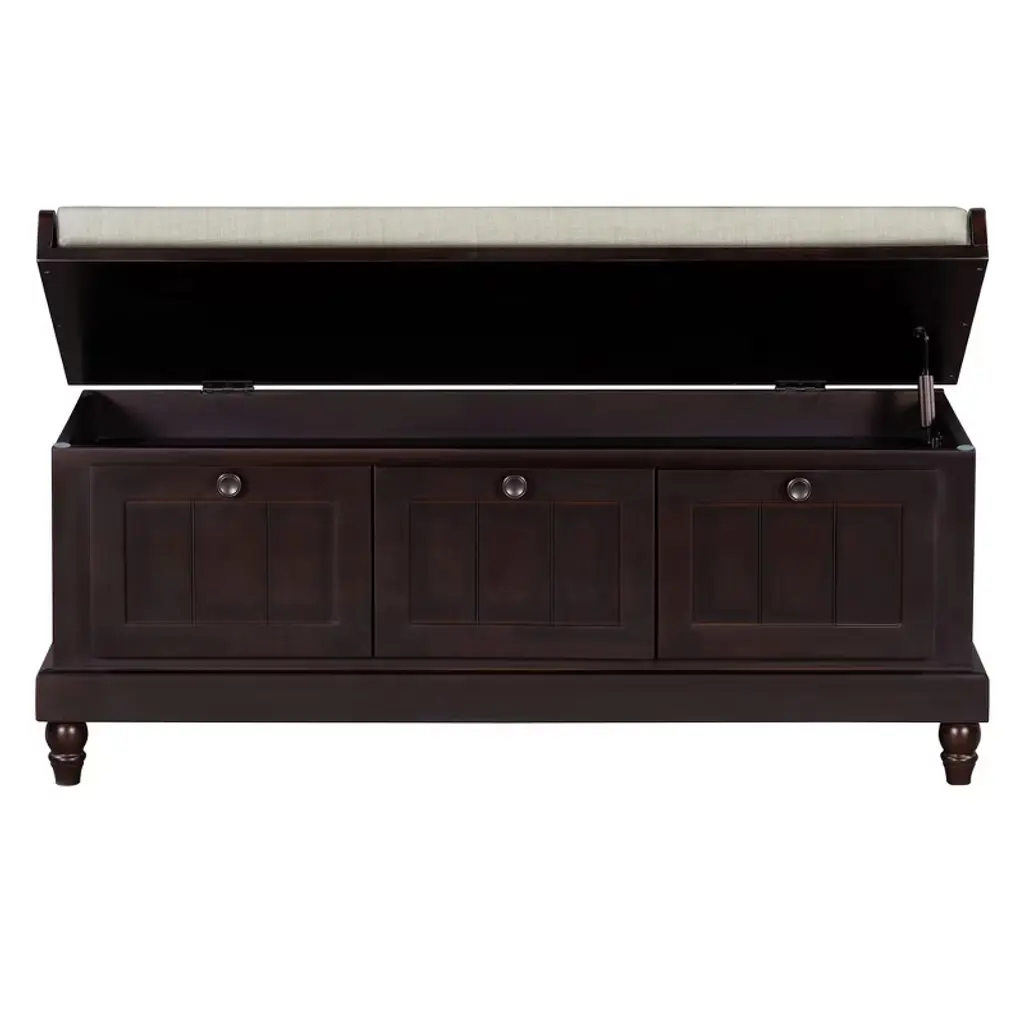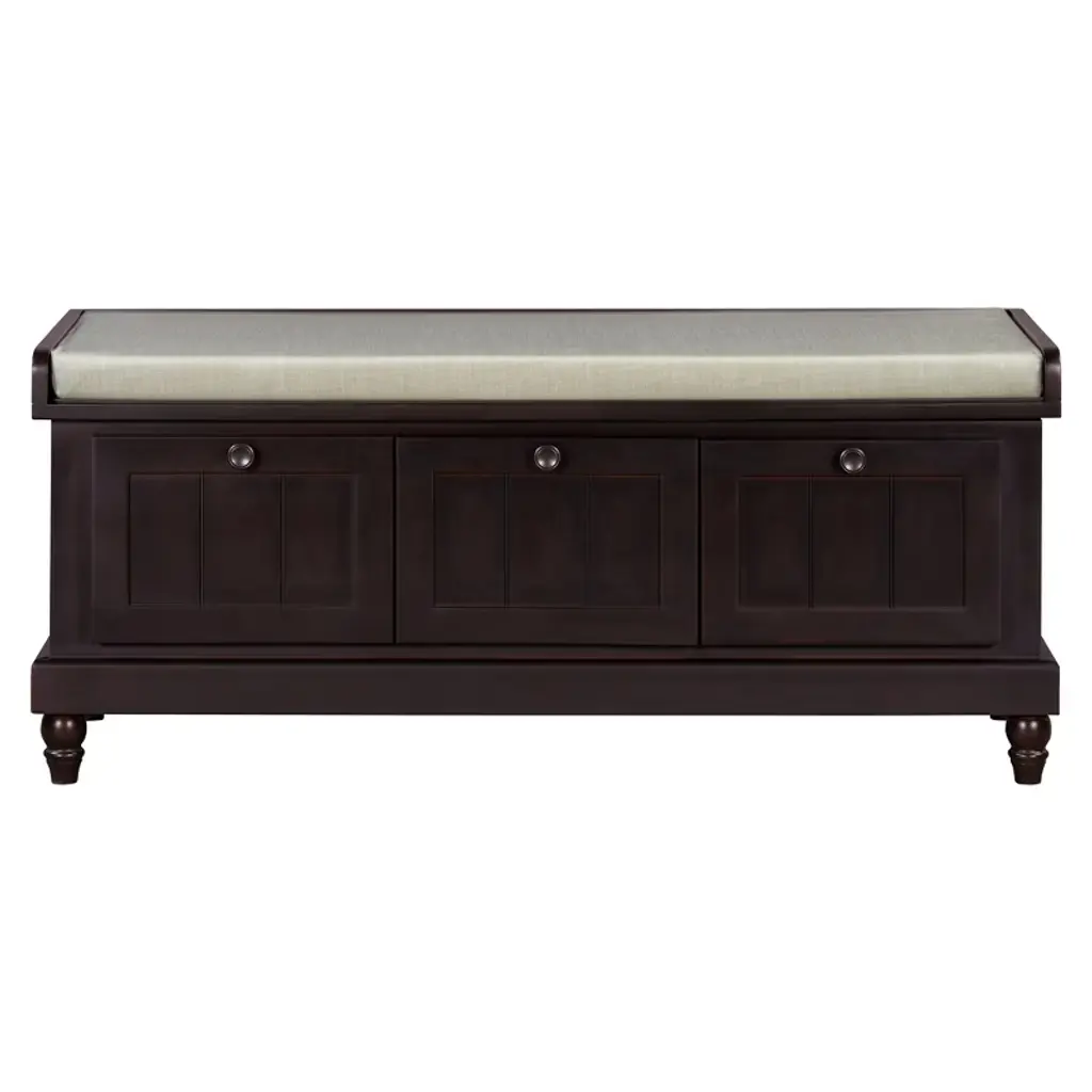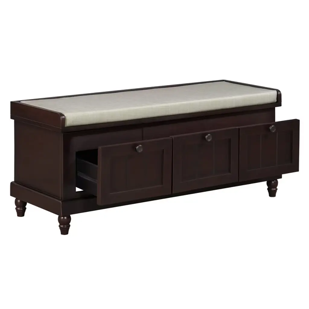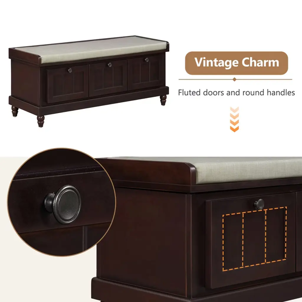 Yoocozz Classic Fluted Shoe Bench With Cushion & 3 Drawers -Espresso