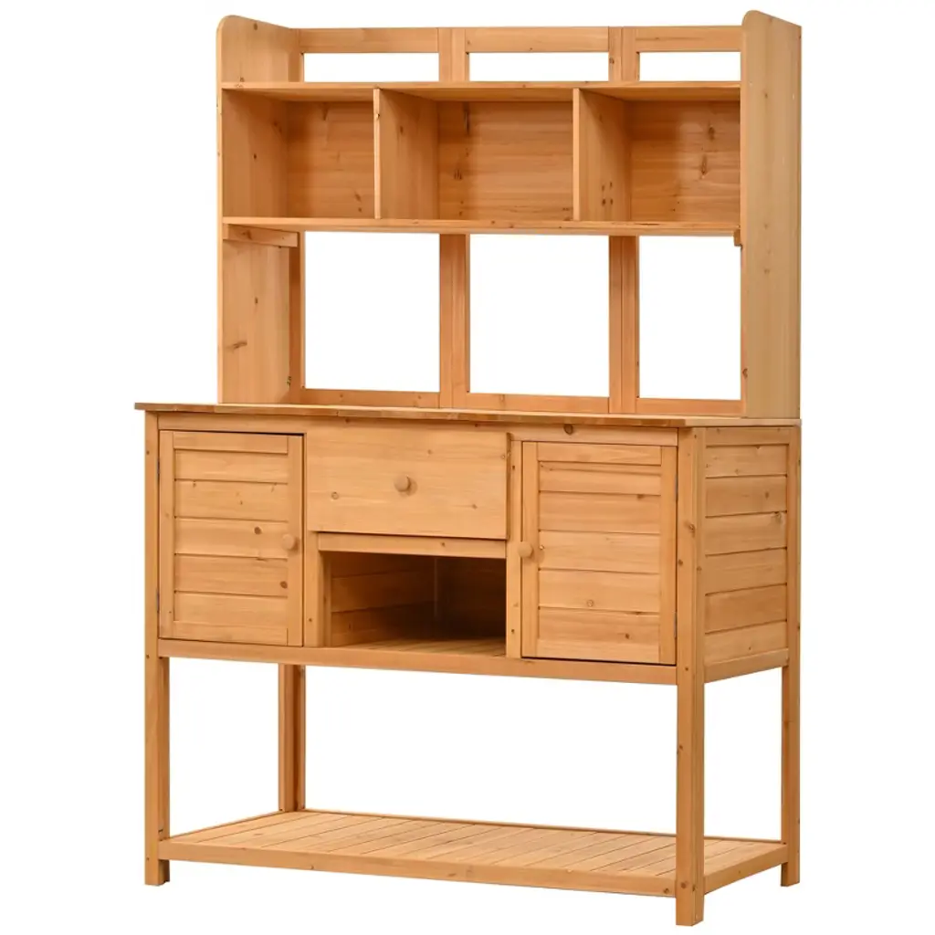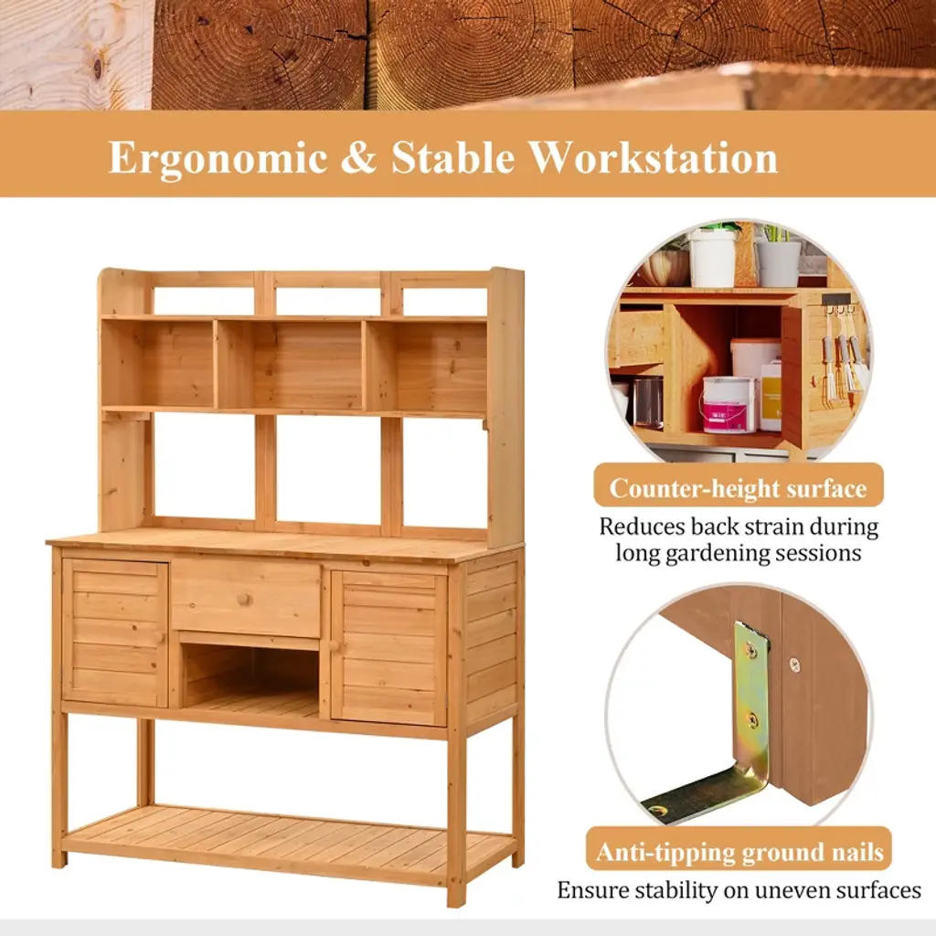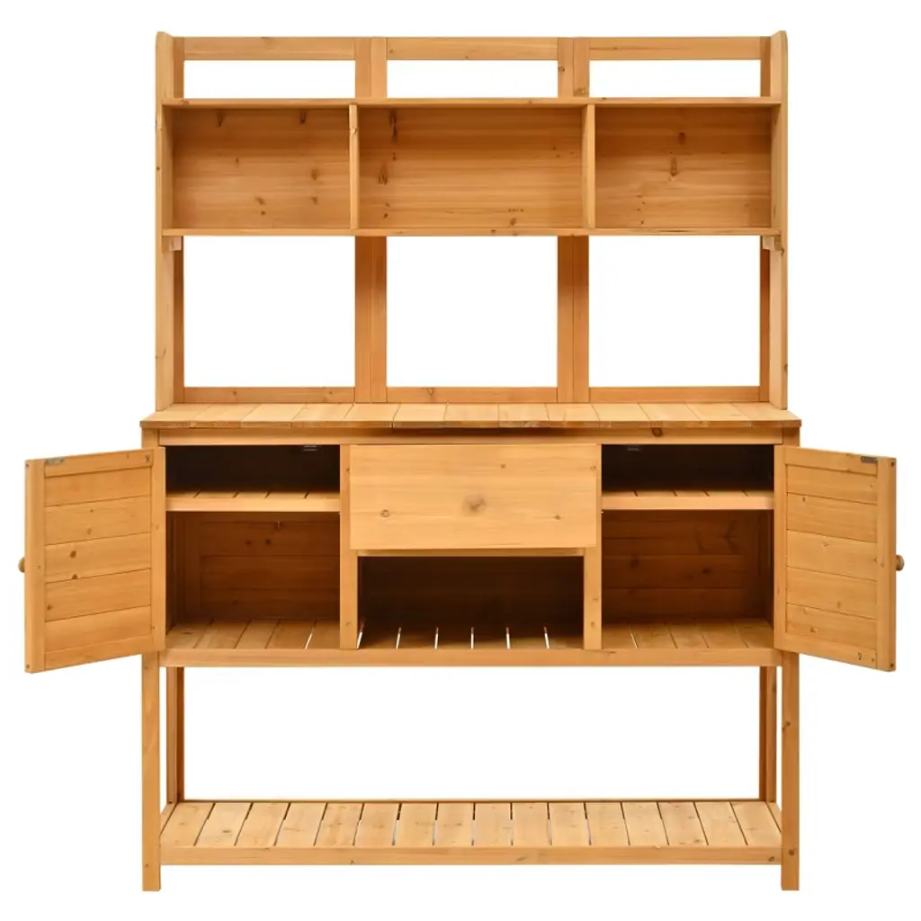 Yoocozz Fir Wood Outdoor Potting Bench, Garden Work Table With Hutch, Drawer And Adjustable Shelves-natural