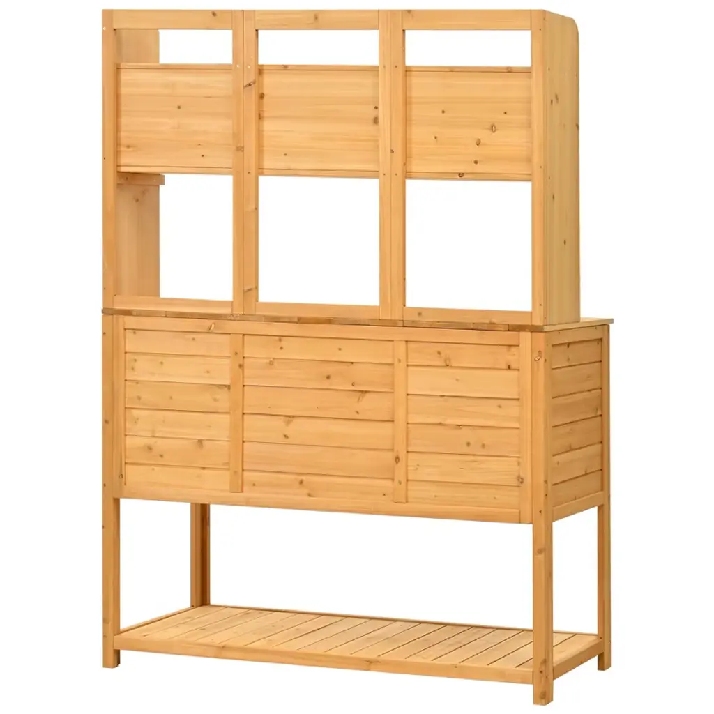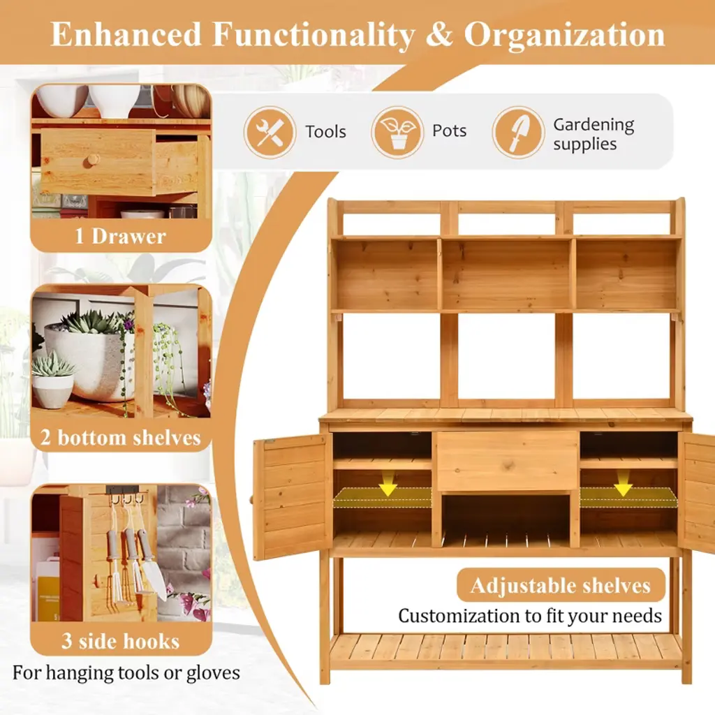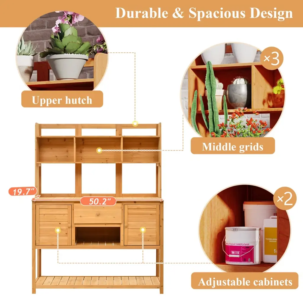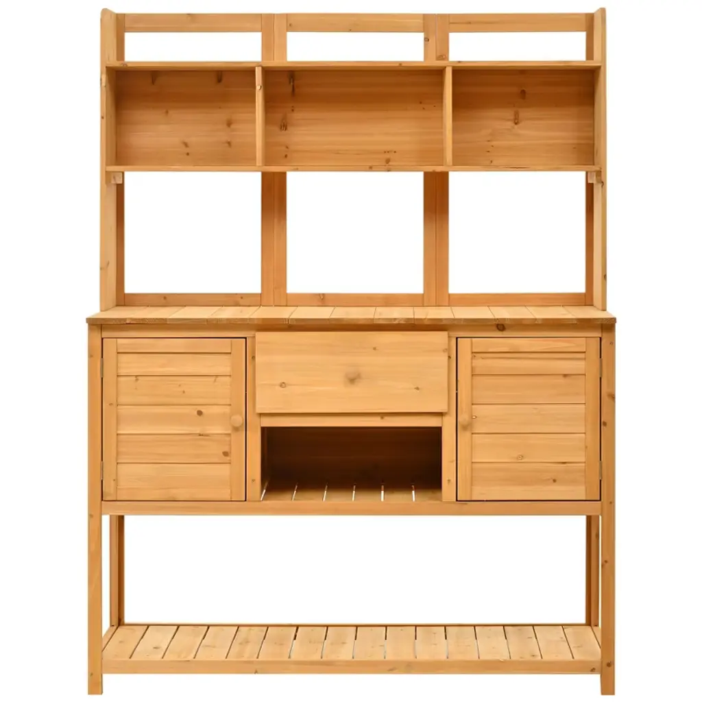 Yoocozz Fir Wood Outdoor Potting Bench, Garden Work Table With Hutch, Drawer And Adjustable Shelves-natural