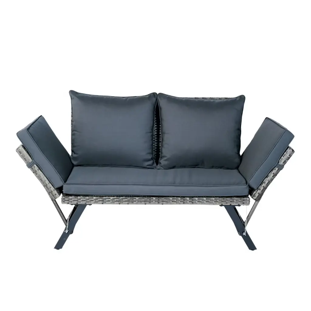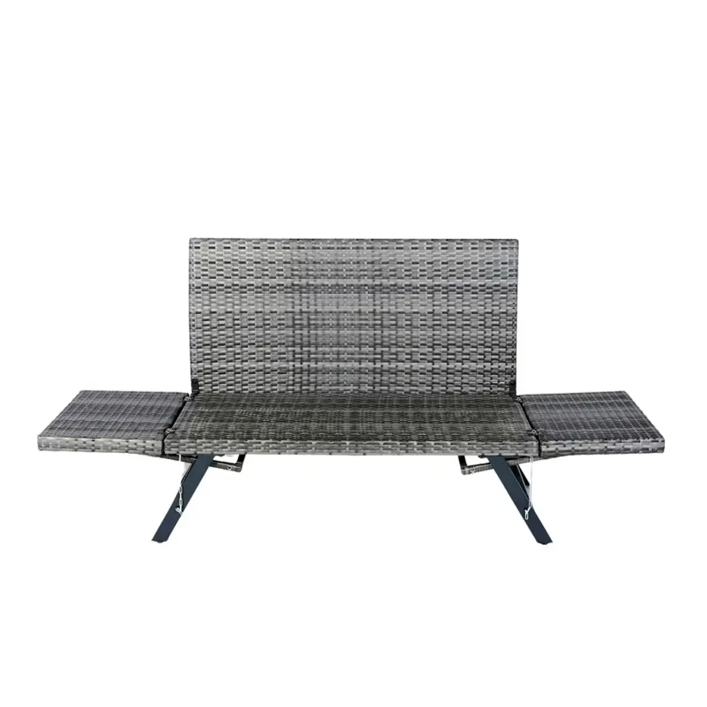 Yoocozz Outdoor Patio Wicker Rattan Bench & Loveseat With Side Foldable Armrests And Thick Cushions - Grey