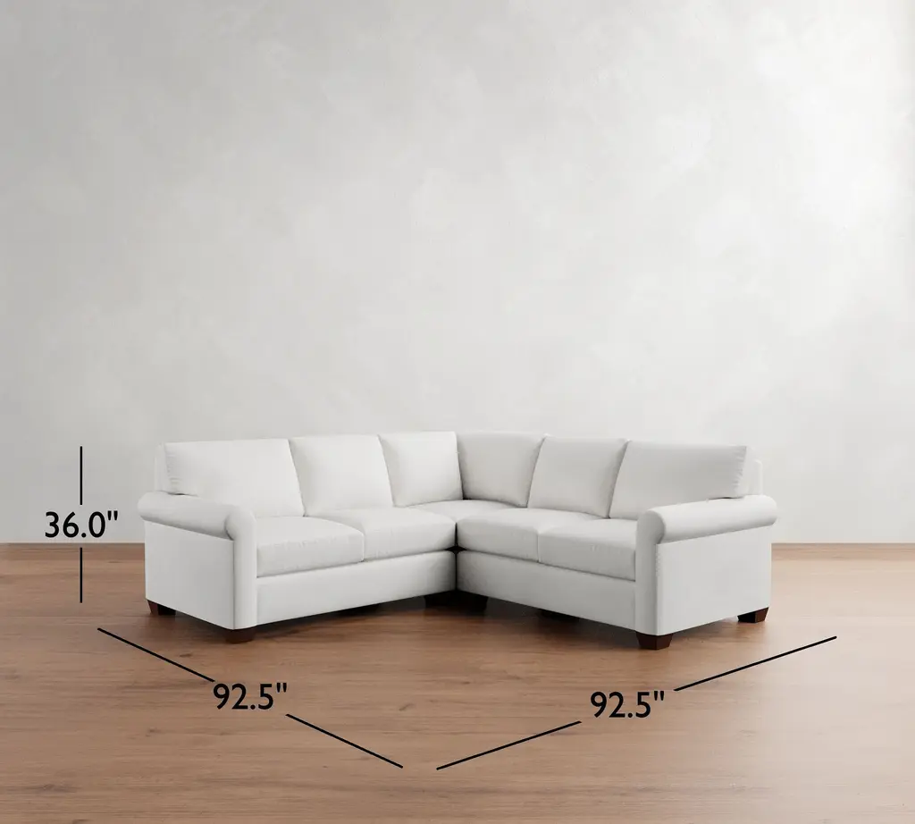York Roll Arm 3-Piece L-Shaped Sectional (93")