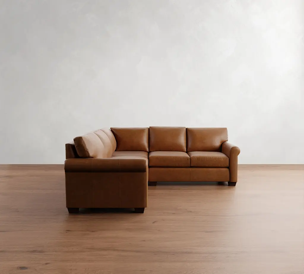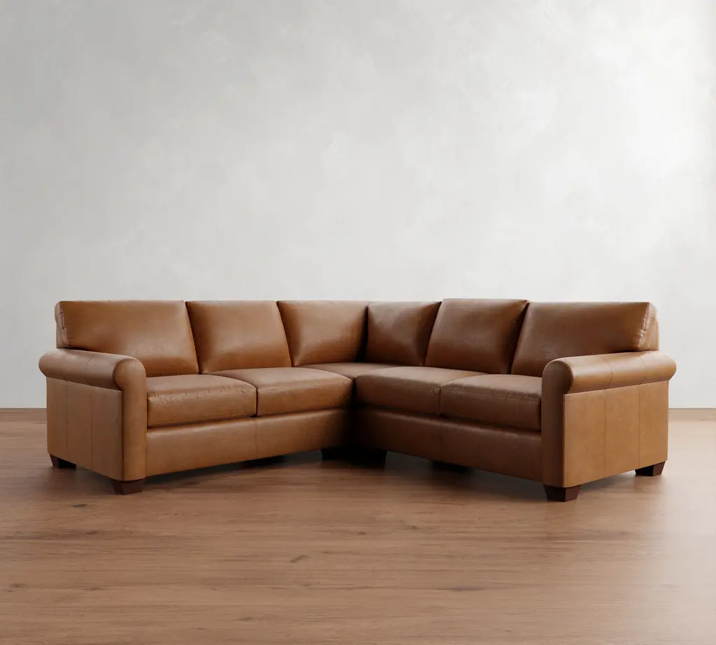 York Roll Arm Leather 3-Piece L-Shaped Sectional (96")