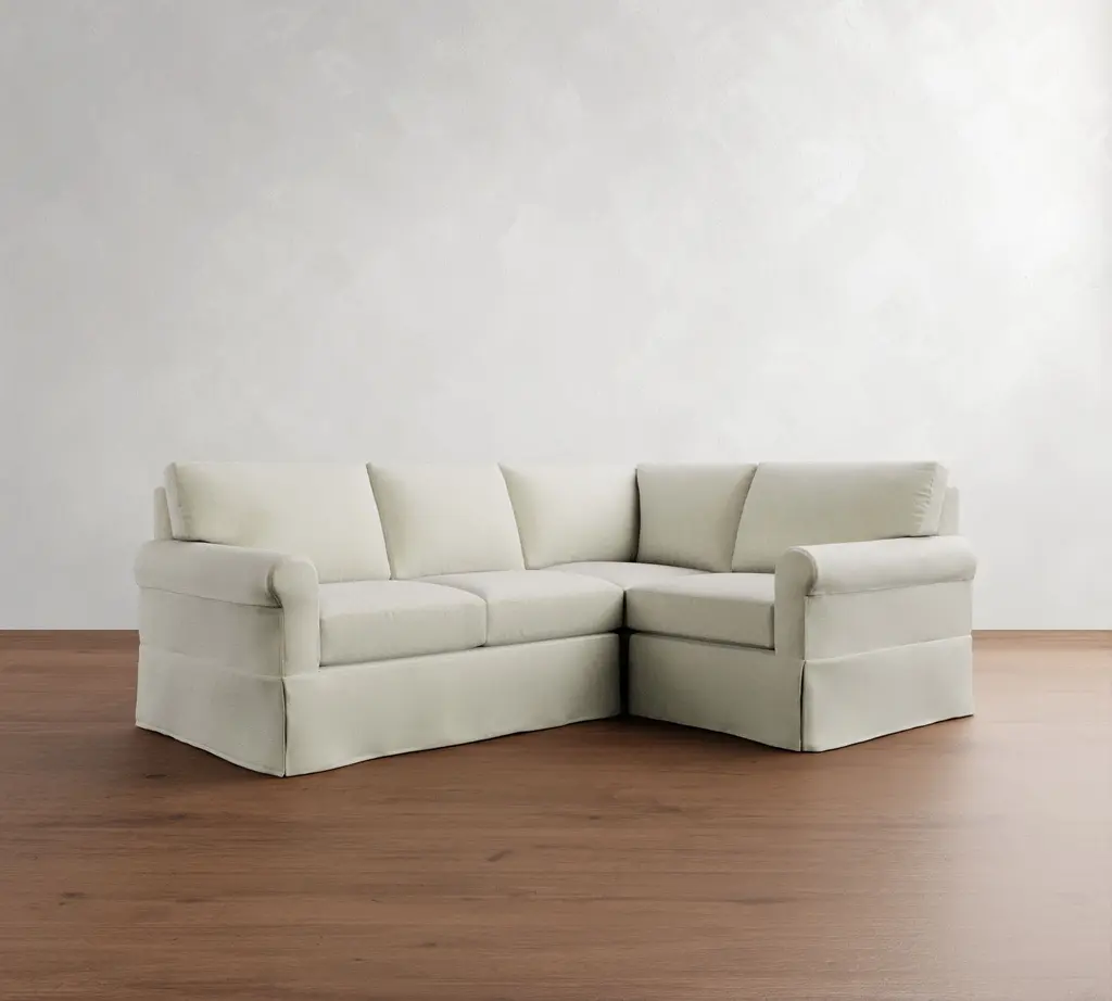 York Roll Arm Slipcovered 3-Piece Sectional (93")