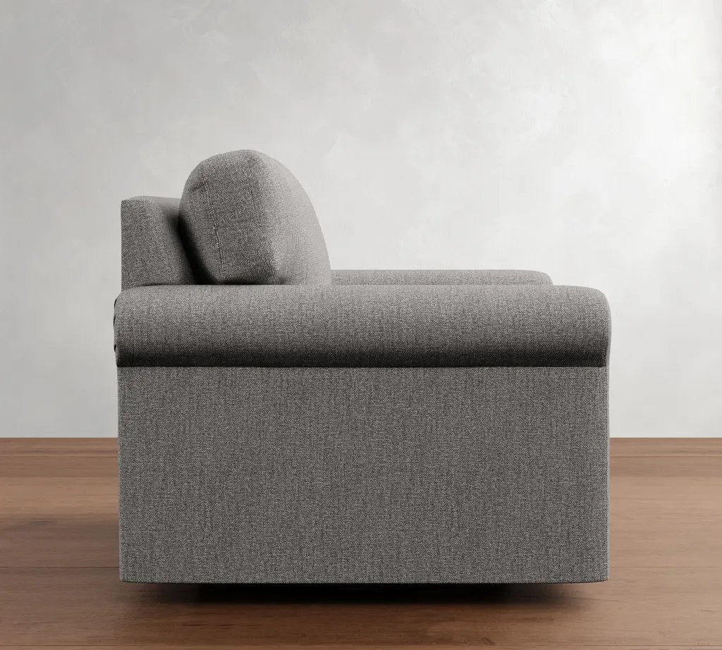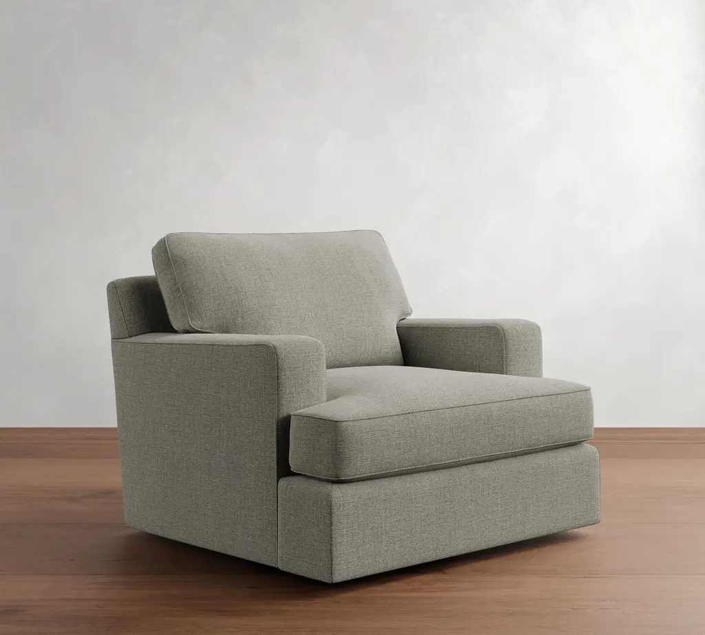 Capturing the elegant lines of modern European seating, York’s elevated style features casual design details like the relaxed baseball stitching. The swivel design keeps things moving – from side conversations to quiet moments alone.