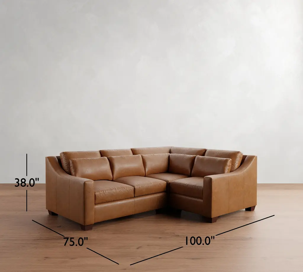 York Slope Arm Deep Seat Leather 3-Piece Sectional (100")