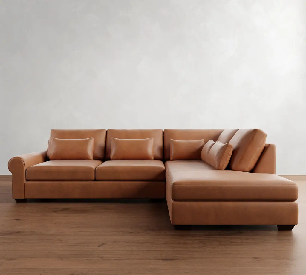 York Slope Arm Leather 3-Piece Sectional (94")