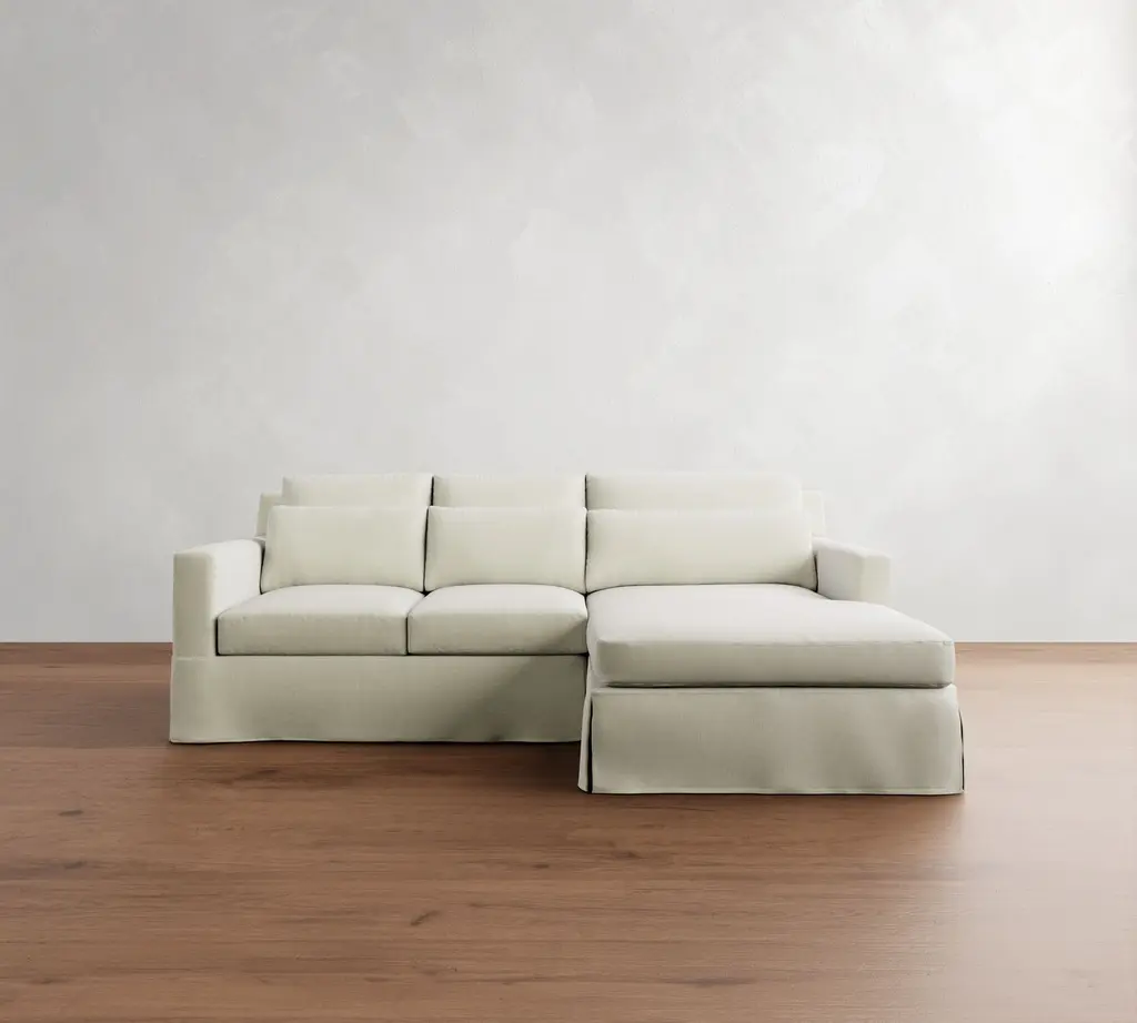 York Square Arm Deep Seat Slipcovered Chaise Sectional (84"–115")