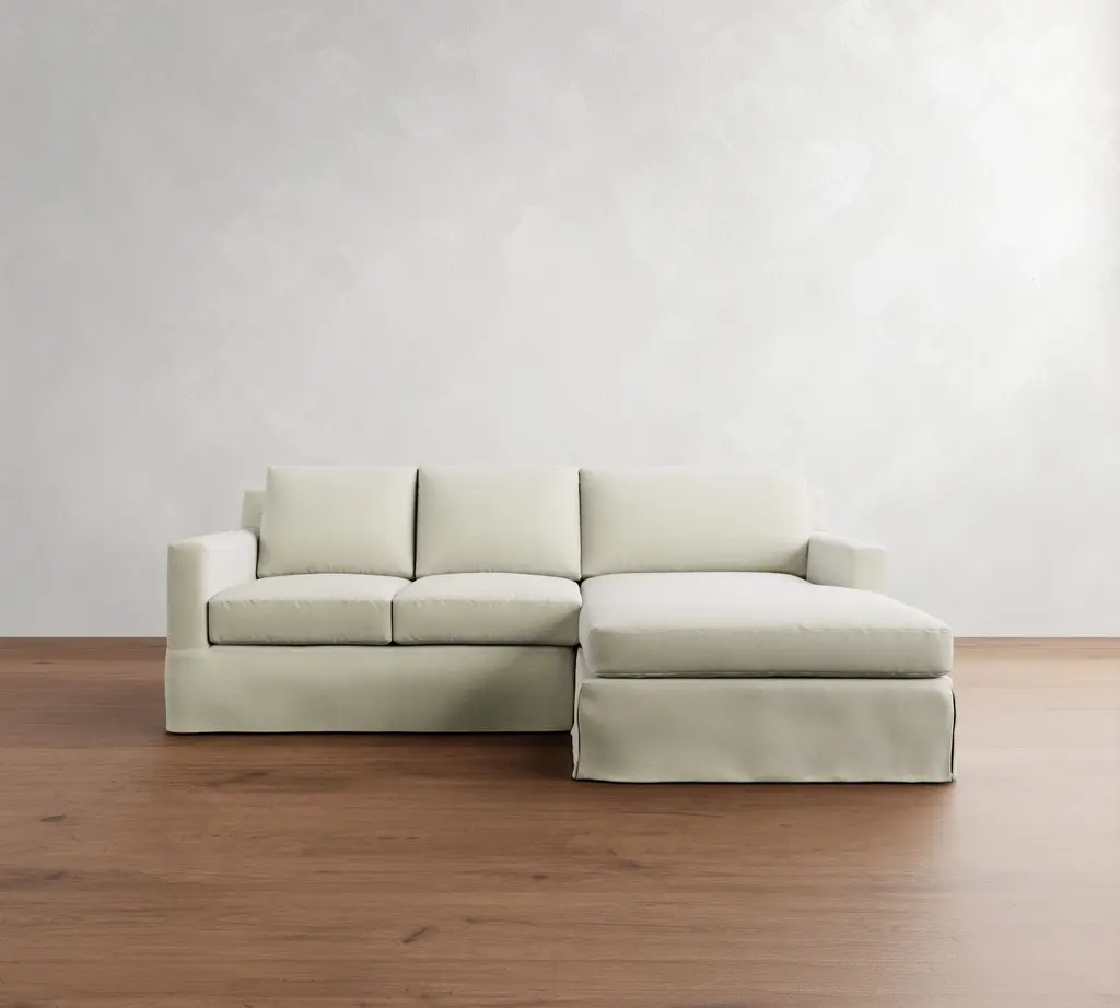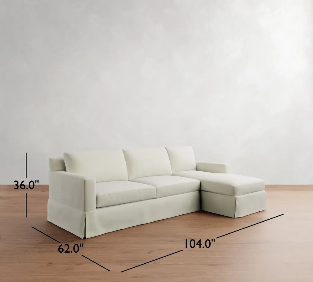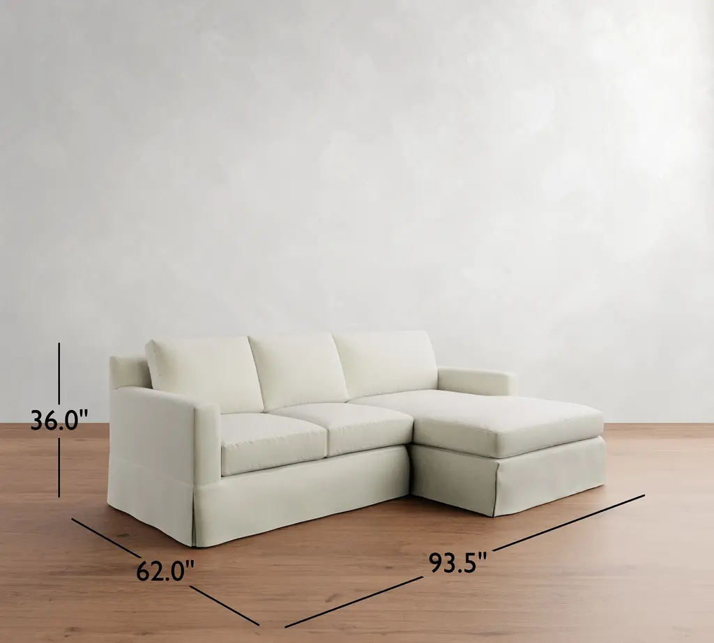 York Square Arm Slipcovered Chaise Sectional (84"–114")