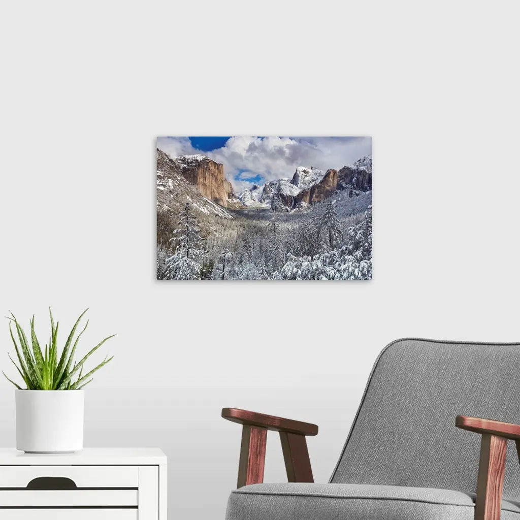 Yosemite National Park, California after snow storm had dumped several inches for fresh snow on valley the night before.