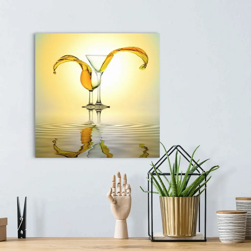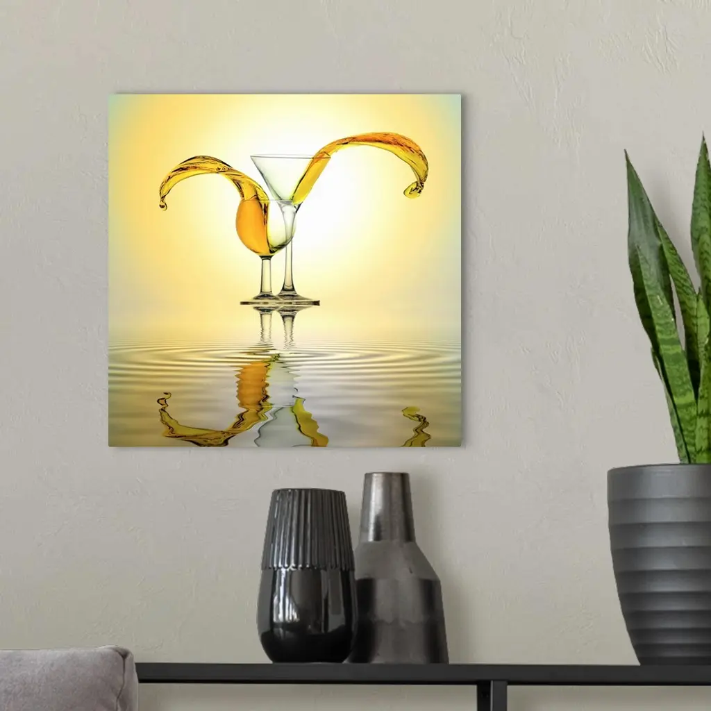Conceptual image of two glasses with orange liquid spilling out of them.