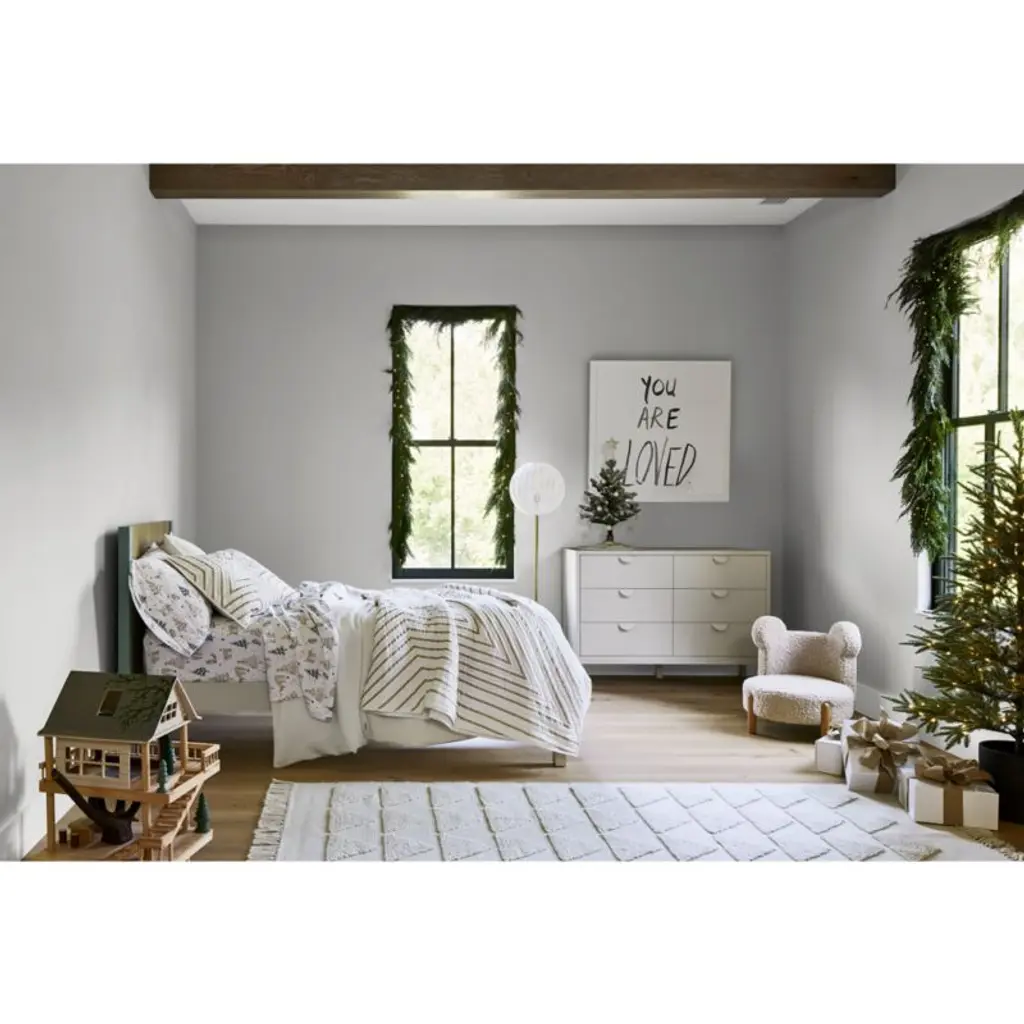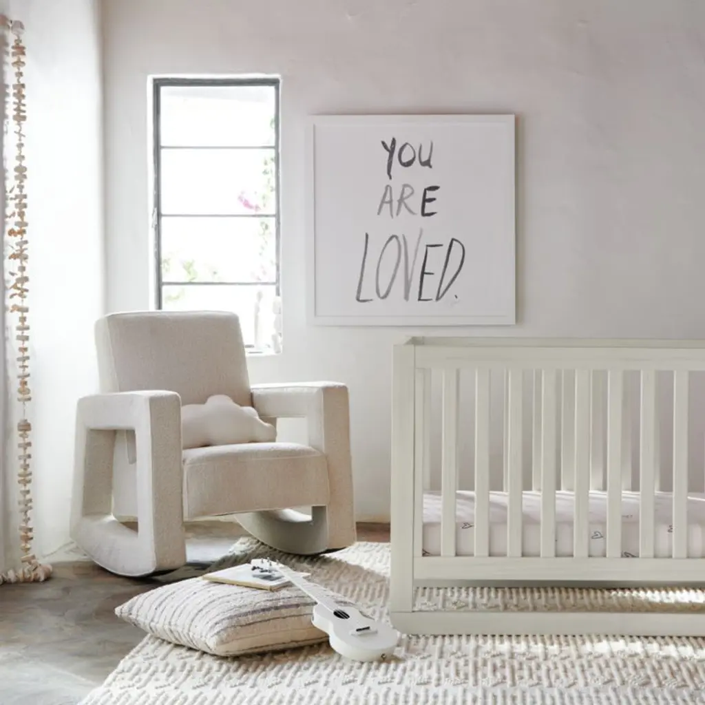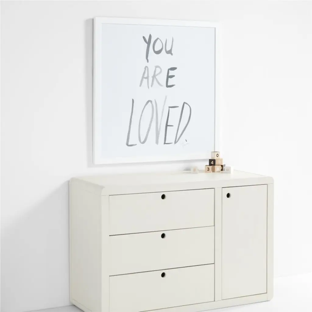 Remind your little one just how loved they are with this graphic wall art and its short-but-sweet message. Capturing Leanne Ford's expressive handwriting in grey watercolor washes, the emphatic, all-caps "You Are Loved" flows into the serene white background and frame. Hang the print in your kid's playroom as part of an eclectic gallery wall or next to their bed so they see it right before bed and when they wake up.Our exclusive collab with star designer and mom Leanne Ford is back by popular demand. This new collection is all about design-forward shapes and warm neutrals that let young imaginations roam free.