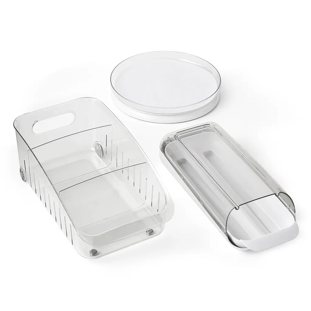 YouCopia helps you keep your home organized. This set helps keeps your fridge both tidy and organized. All the pieces are quick and easy to set up.