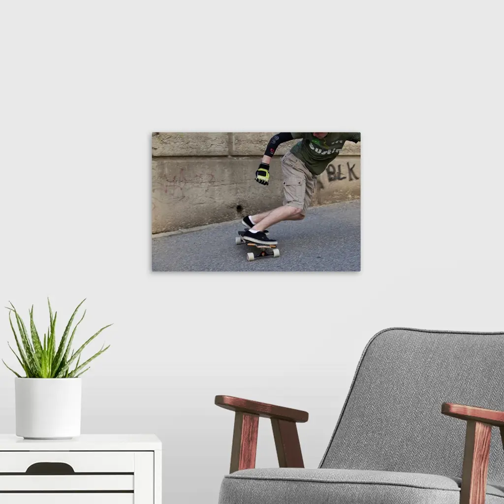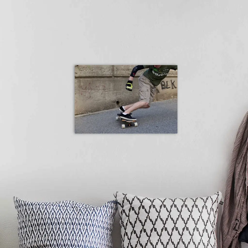 Young male skateboarder on urban street wall art for home and office decor. Discover canvas art prints, photos, mural, big canvas art and framed wall art in GreatBigCanvas.com's varied collections.