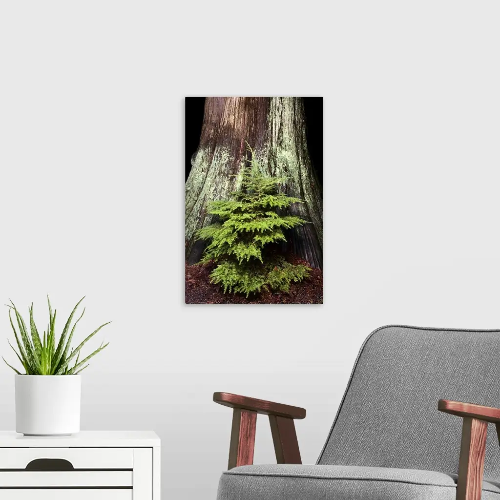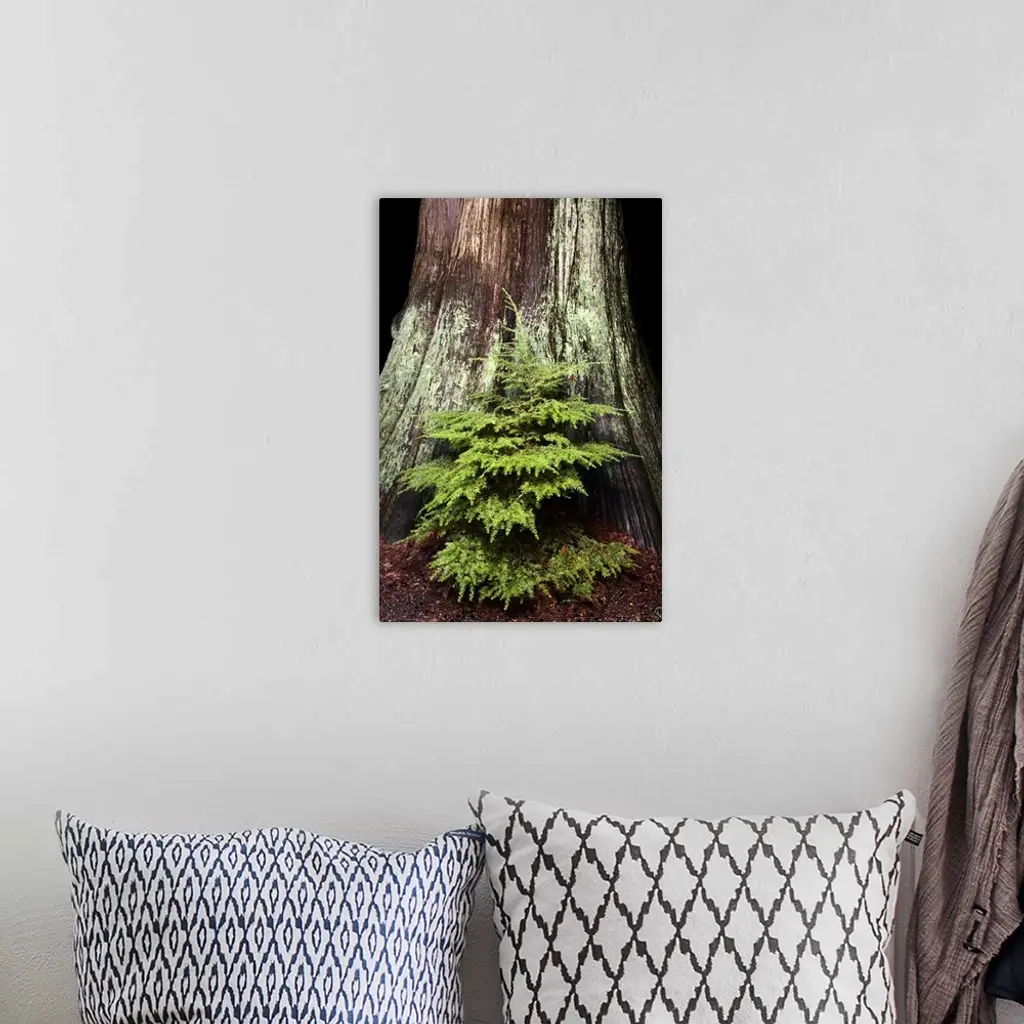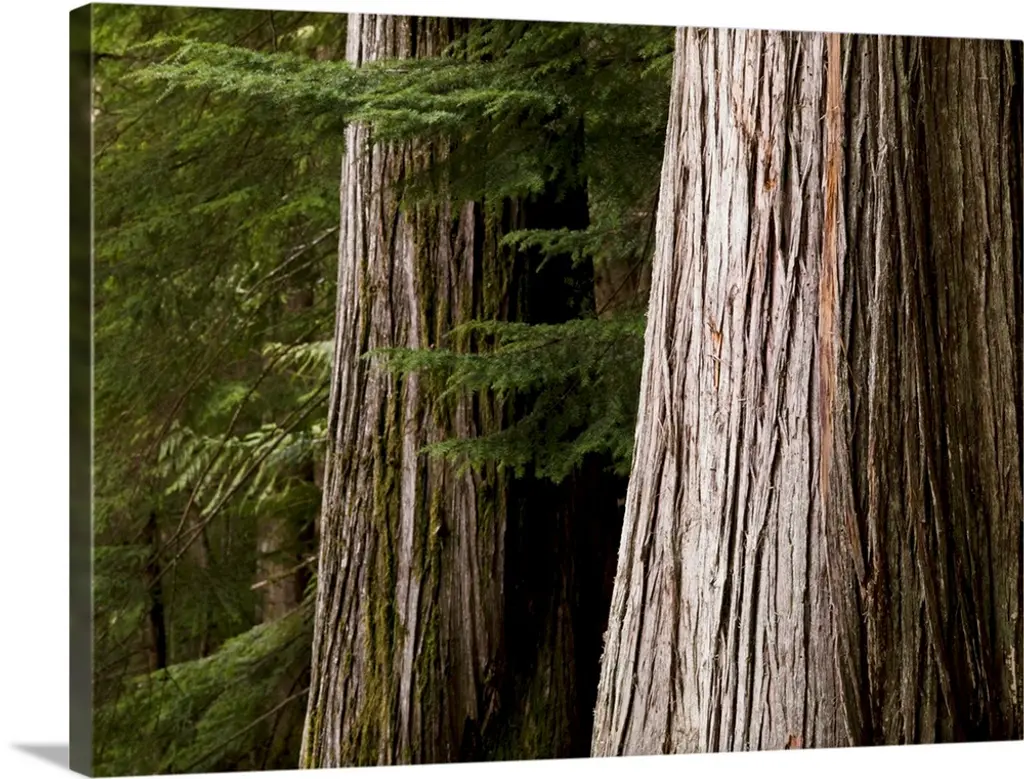 Young western hemlock, Tsuga heterophylla, and western red cedar, Thuja plicata, Stanley Park, British Columbia