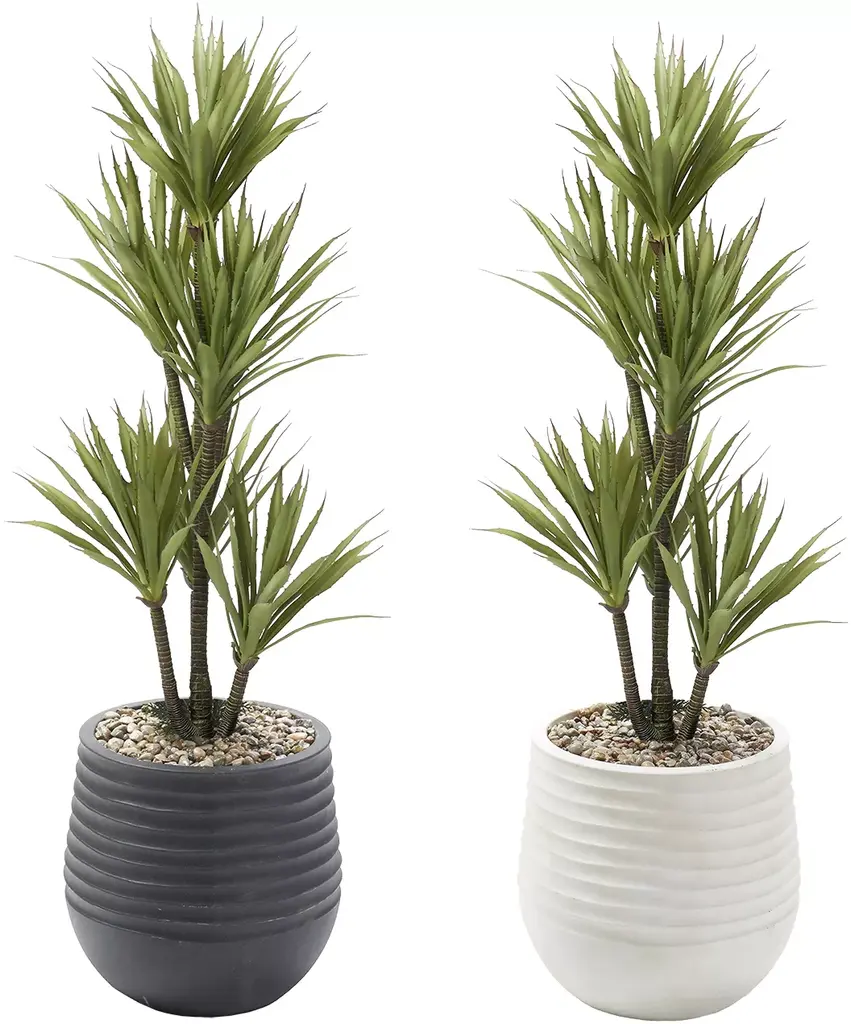 Elevate any indoor or outdoor area with our 55-inch tall faux Yucca tree, elegantly presented in your choice of a textured black or white pot. This versatile piece is not only a stylish accent but also UV protected for resilience in outdoor environments. Please select your color before adding to cart.