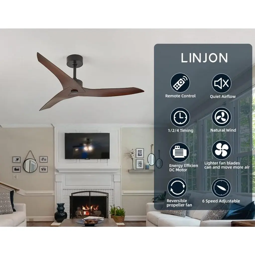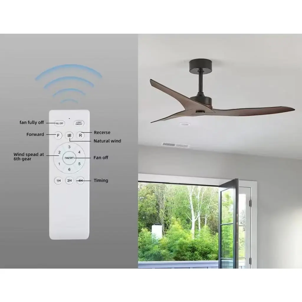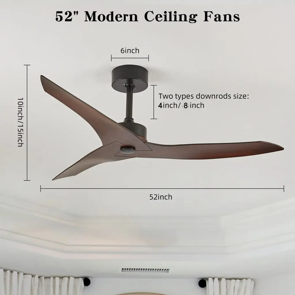 Yuhao 52 Inch Indoor 6-speed Modern And Contemporary Ceiling Fan Without Light,3 Brown Abs Blades And Remote Control