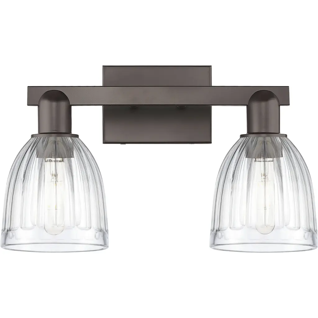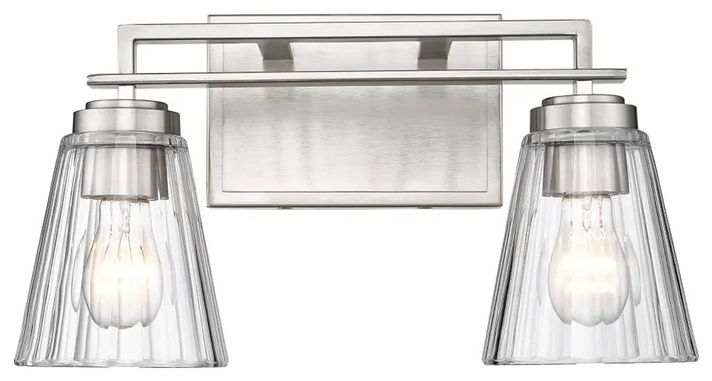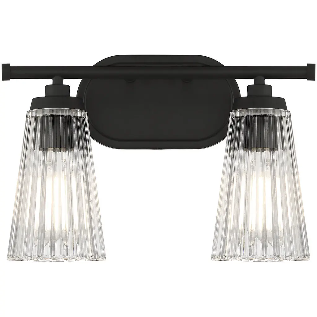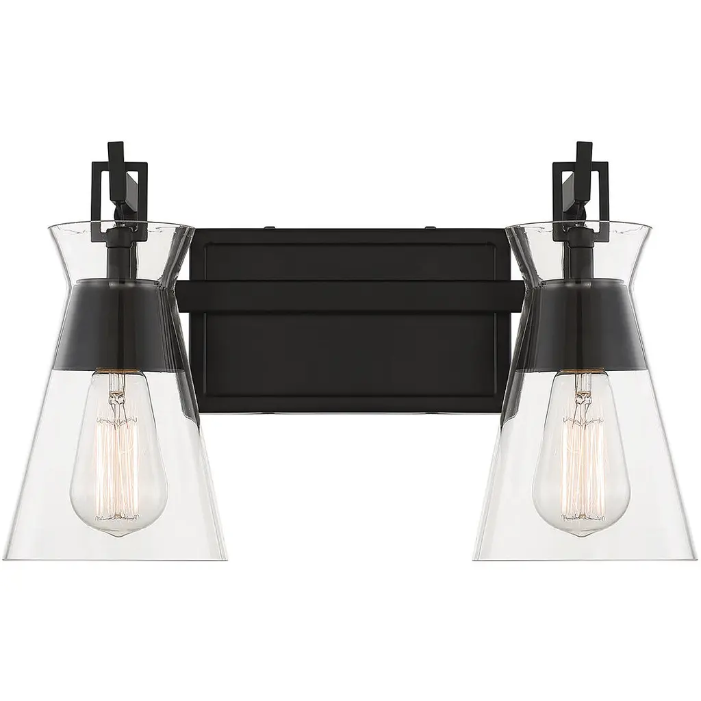Z-LITE 823-2V-MB 2-Light Vanity, Matte BlackStyle: Transitional, Classic, Glass, RestorationCollection: LynaFrame Finish: Matte BlackFrame Material: SteelShade Finish/Color: ClearShade Material: GlassDimension(in): 6.5(L) x 16(W) x 9(H)Backplate Dimension(in): 5"(L) x 7.5"(W)Bulb: (2)100W Medium Base,Dimmable(Not Included)Vanity/Sconce Dual Mount (Up And Down): YesUL Classification: ETLUL Application: Damp.