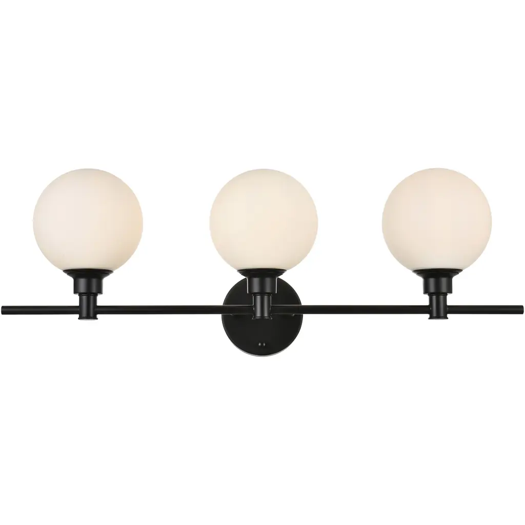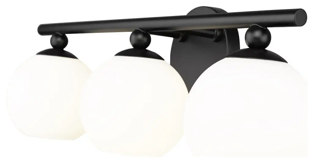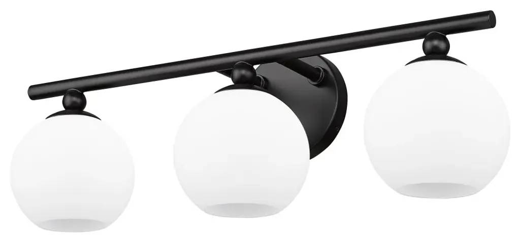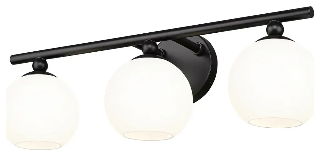 Z-LITE 1100-3V-MB 3-Light Vanity, Matte BlackStyle: Modern, Urban, LoftCollection: NeomaFrame Finish: Matte BlackFrame Material: SteelShade Finish/Color: Opal EtchedShade Material: GlassDimension(in): 6.75(L) x 21.75(W) x 7.25(H)Backplate Dimension(in): 4.625"(L) x 4.625"(W)Bulb: (3)60W Candelabra Base,Dimmable(Not Included)Vanity/Sconce Dual Mount (Up And Down): YesUL Classification: UL/ CUL CertifiedUL Application: Damp.
