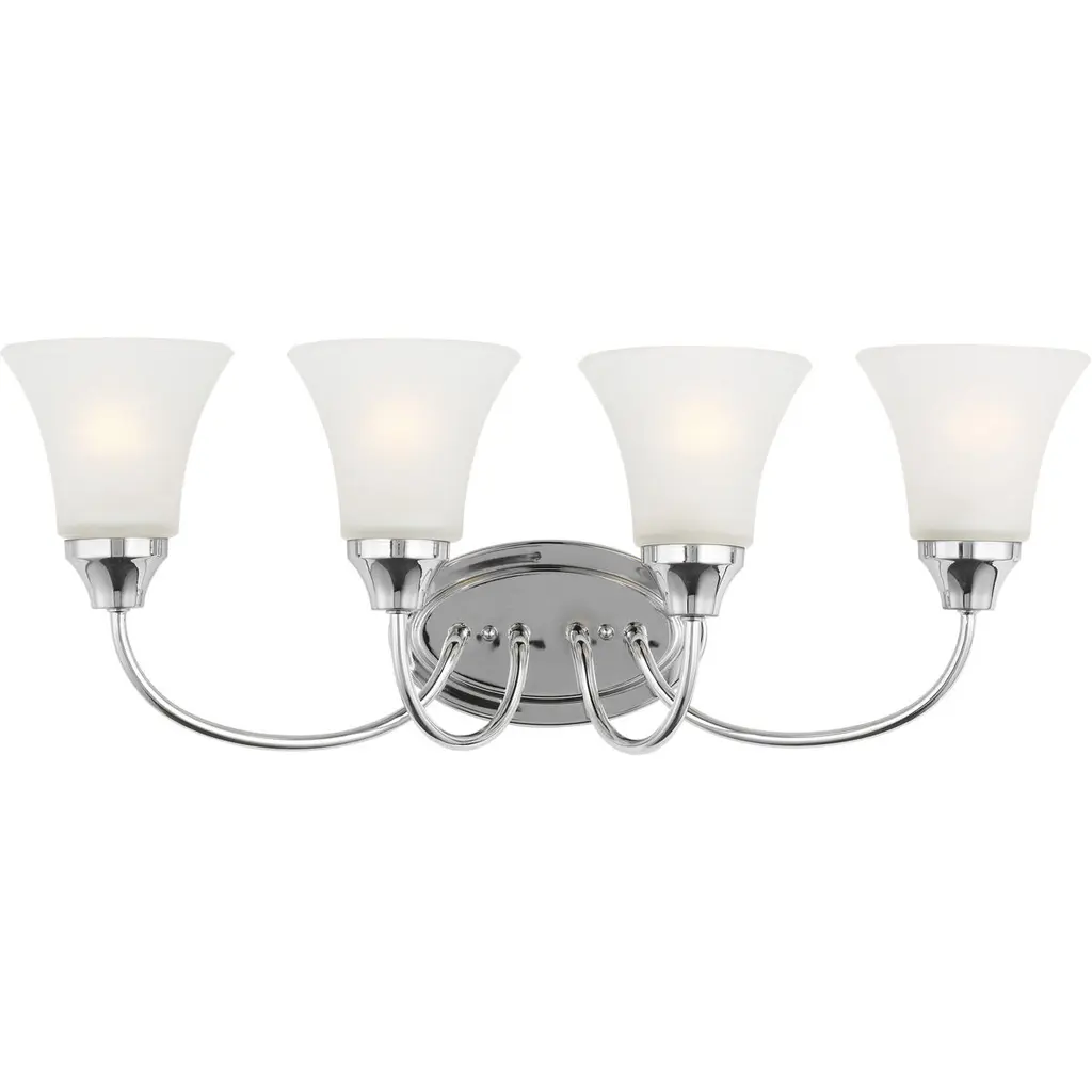 Matte opal glass shades rest elegantly upon beautifully designed hardware that is finished in chrome, creating a look that is uniquely modern. This four light vanity fixture will add a touch of modern class where ever it is hung. Bathroom/Powder Room Mounting Direction: Up/Down Shade Included: Yes Dimmable: Yes Material: Steel, Finish Color: Chrome, Width: 31", Height: 11", Length: 5.5", Depth: 5.5", Backplate Width: 5.75", Backplate Length: 5.75", Lamping Type: Incandescent, Number Of Bulbs: 4, Wattage: 100 Watts, Dimmable: Yes, Moisture Rating: Damp Rated
