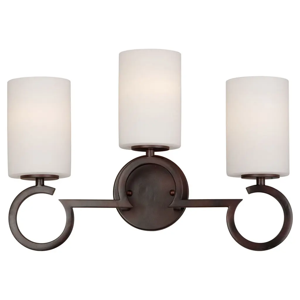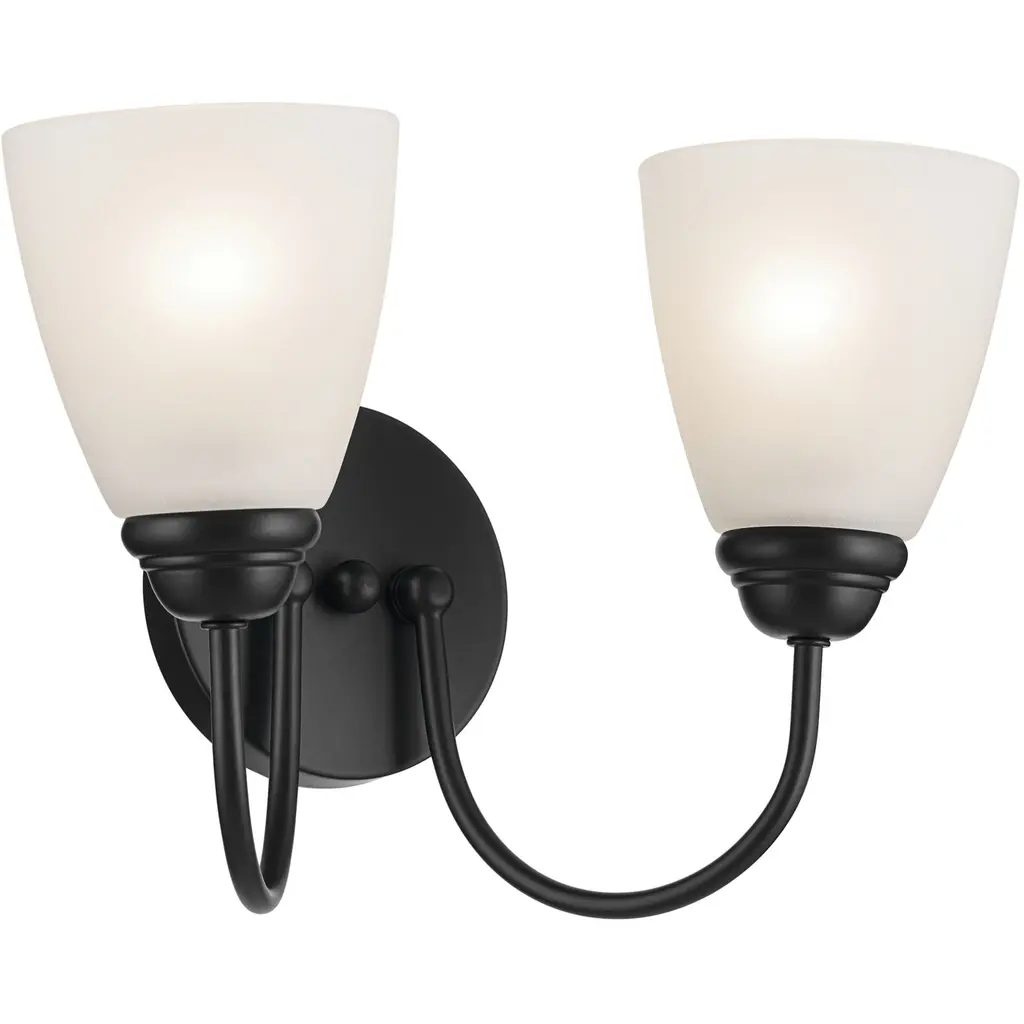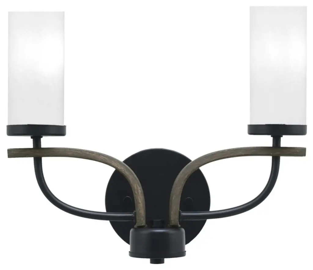 Matte opal glass sitting atop the graceful curving arms give the Cardinal family its transitional style. The olde bronze finish is perfectly paired with matte opal glass to complete this up to date 2 light vanity. Bathroom/Powder Room Mounting Direction: Up/Down Shade Included: Yes Dimmable: Yes Material: Glass, Finish Color: Olde Bronze, Width: 11.5", Height: 9.25", Length: 6.25", Depth: 6.25", Backplate Width: 5", Backplate Length: 8", Lamping Type: Incandescent, Number Of Bulbs: 2, Wattage: 100 Watts, Dimmable: Yes, Moisture Rating: Damp Rated