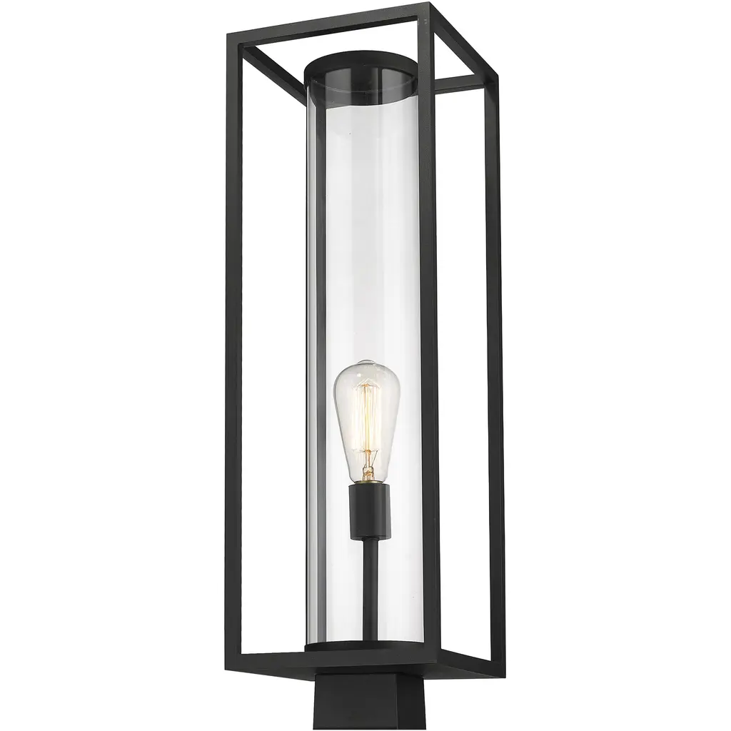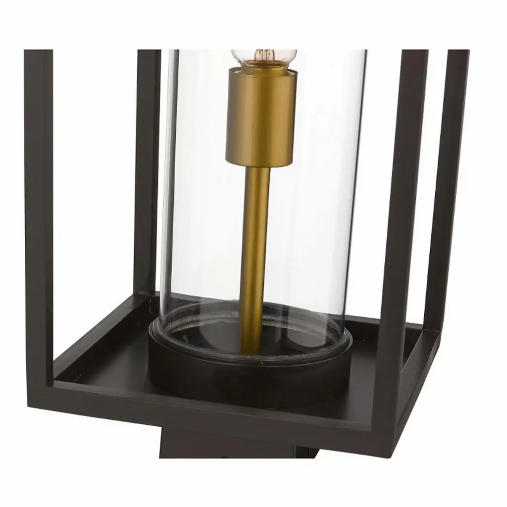 From the Dunbroch collection comes this elegant, contemporary outdoor post mount, ideal for patio decks and railings. With an open and airy rectangular aluminum lantern, this post mount fixture features a single light fixture in a warm outdoor brass finish, and is sheathed inside a transparent tube-like glass globe that allows the light to disperse evenly across pathways and seating areas. This outdoor light fixture also features a timeless deep bronze finish that suits existing building facade materials and colors schemes. Outdoor Living/Deck/Patio Shade Included: Yes Dimmable: Yes