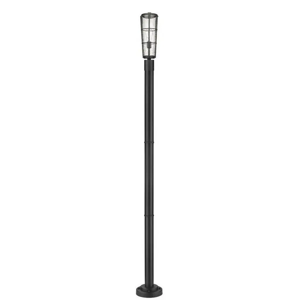 This one-light outdoor post-mounted fixture shapes up a walkway or garden space, adding a vintage-inspired look of village charm. The Helix post-mounted fixture is crafted of hand-worked black finish aluminum and features a lantern-like frame with linear accents covering a romantic clear seedy glass shade. Mounted to a sleek rounded post, this light becomes a focal point in any outdoor space. Dimmable: Yes Shade Included: Yes