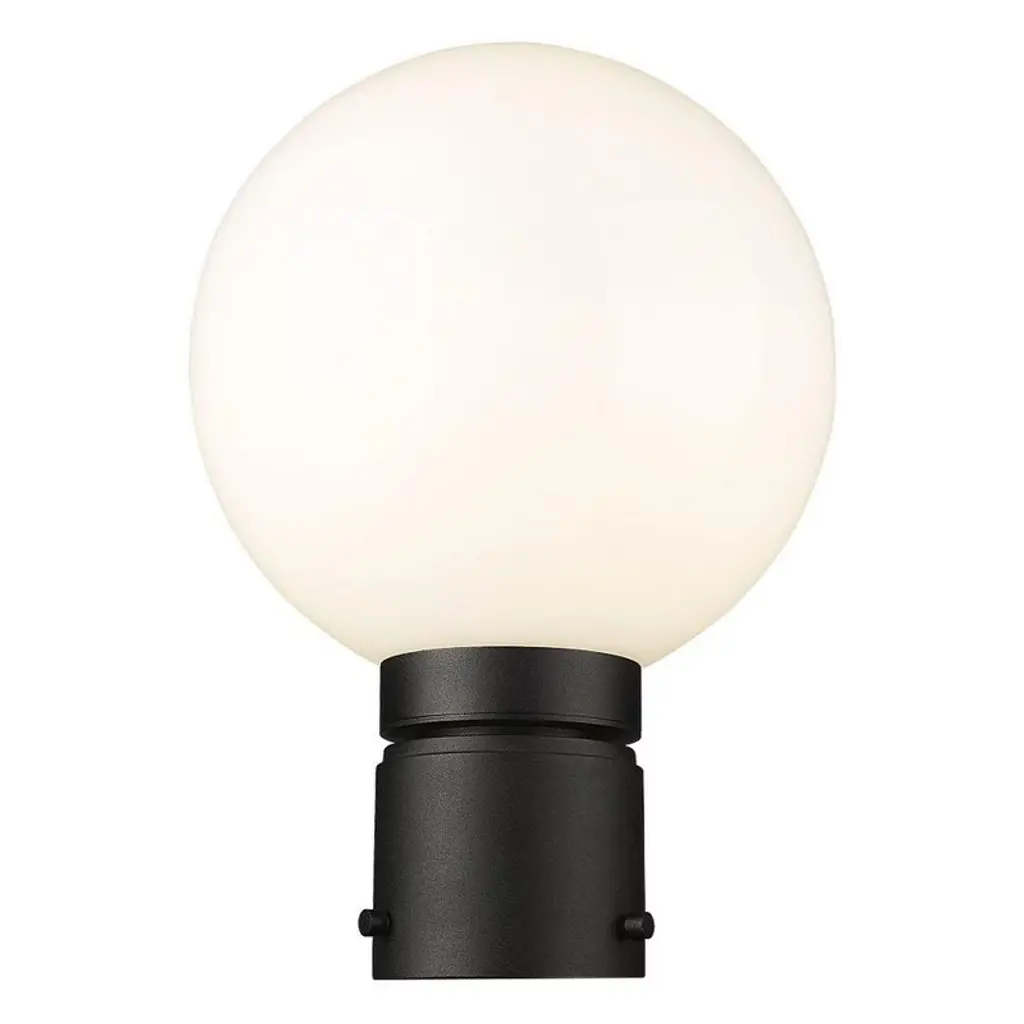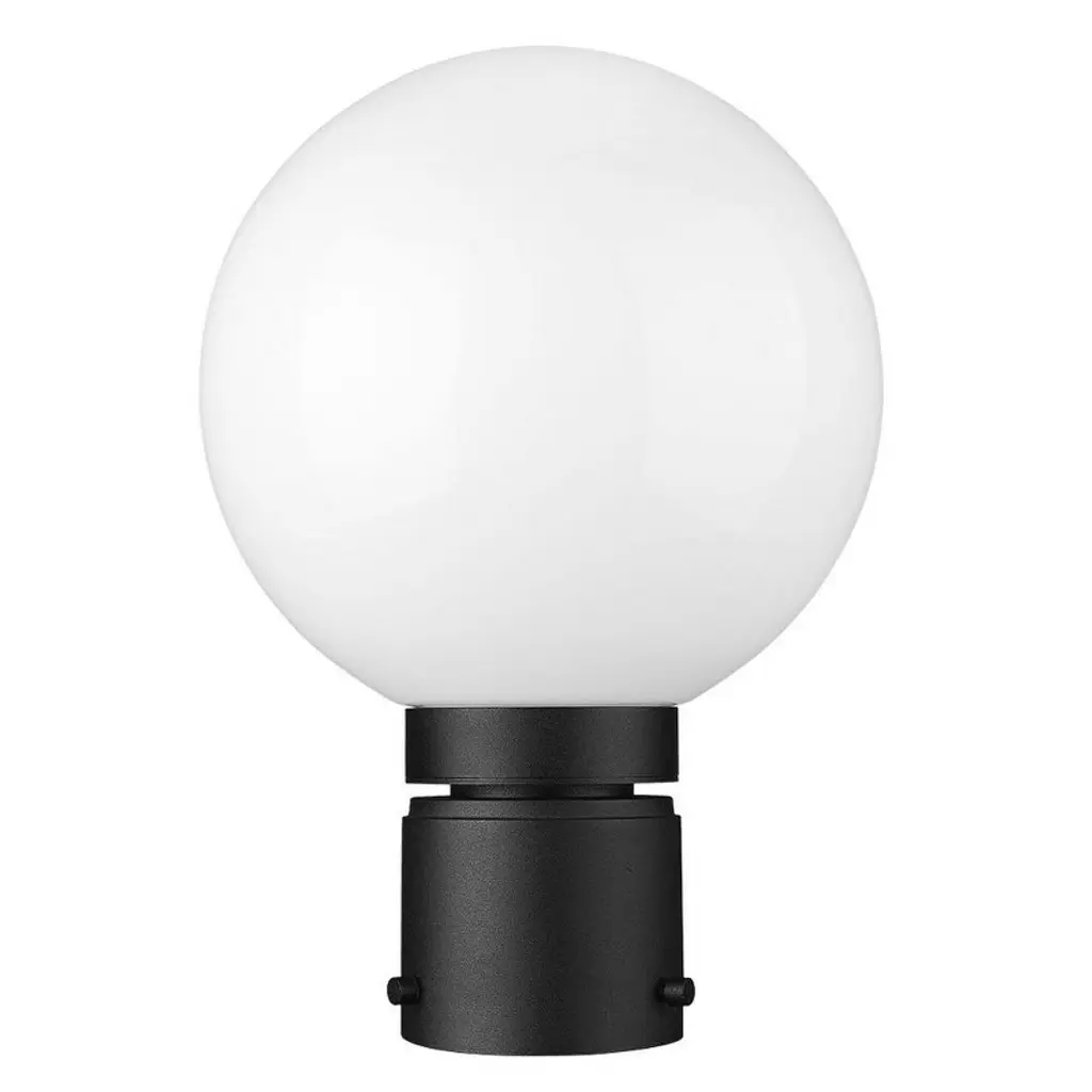 From the Laurent collection comes a classic look in exterior lighting rooted in Mid-Century Modern fare. This one-light post mount fixture maintains an elegant simplicity with an aesthetic reminiscent of retro village charm. Crafted of black finish aluminum, its simple base is made more festive when topped with a whimsical opal glass globe, creating artistry in lighting.