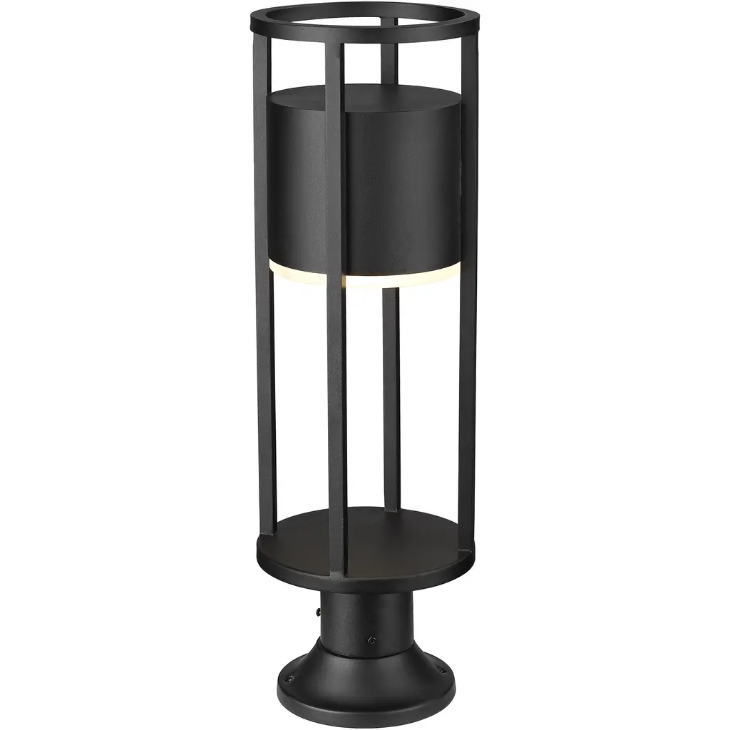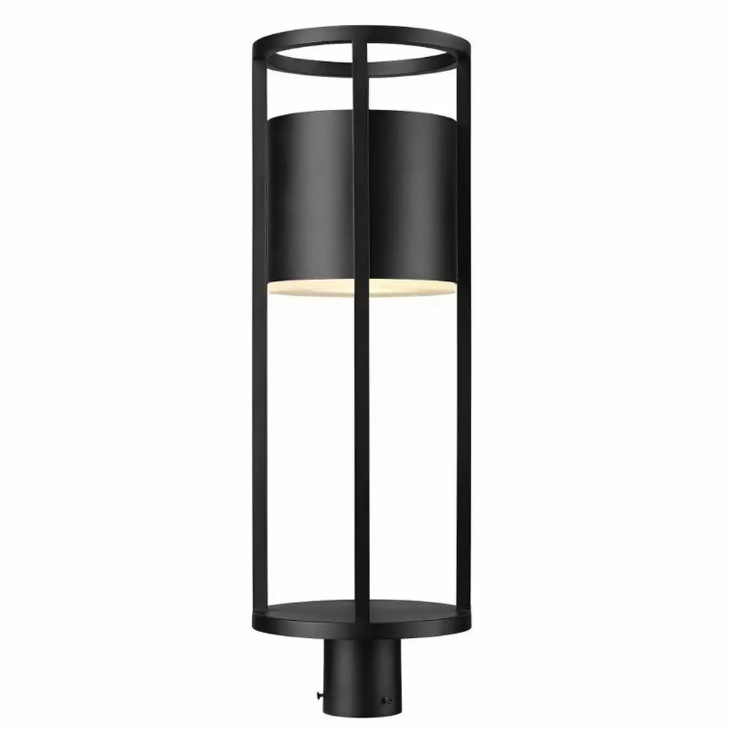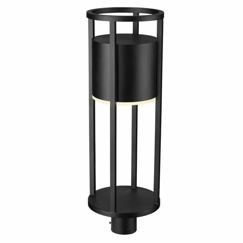 Modernize exterior lighting in chic style with design-forward look ideal for walkways, gardens, and yards. This one-light outdoor post mount fixture from the Luca series offers an openwork cylinder frame featuring black aluminum with an etched glass diffuser. LED lighting offers energy efficiency to embellish its value. Material: Aluminum, Finish Color: Black, Width: 9.25", Height: 27.75", Length: 9.25", Lamping Type: LED, Number Of Bulbs: 1, Wattage: 11 Watts, Cri: 90, Color Temperature: 2700 Kelvin, Lumens: 330, Dimmable: Yes, Moisture Rating: Wet Rated