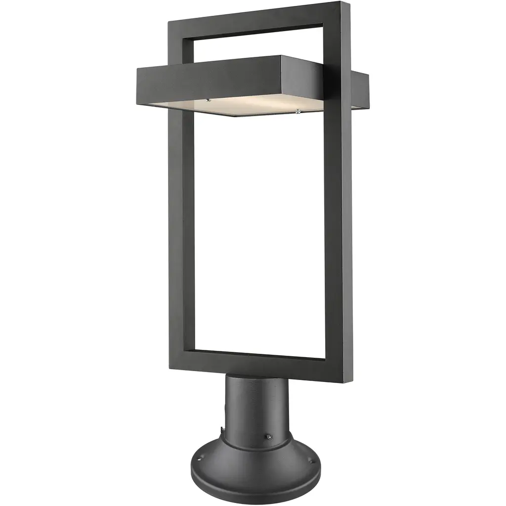 A contemporary flavor with soft charm highlights the features of this black aluminum outdoor post mounted fixture. A single energy-efficient bulb offers just the right amount of lighting through a frosted glass shade, bringing a hint of Art Deco feel to a modern space. Color Temperature: 2700K Lumens: 512 CRI: 90 Room Recommendations: Outdoor Living/Deck/Patio Shade Included: Yes