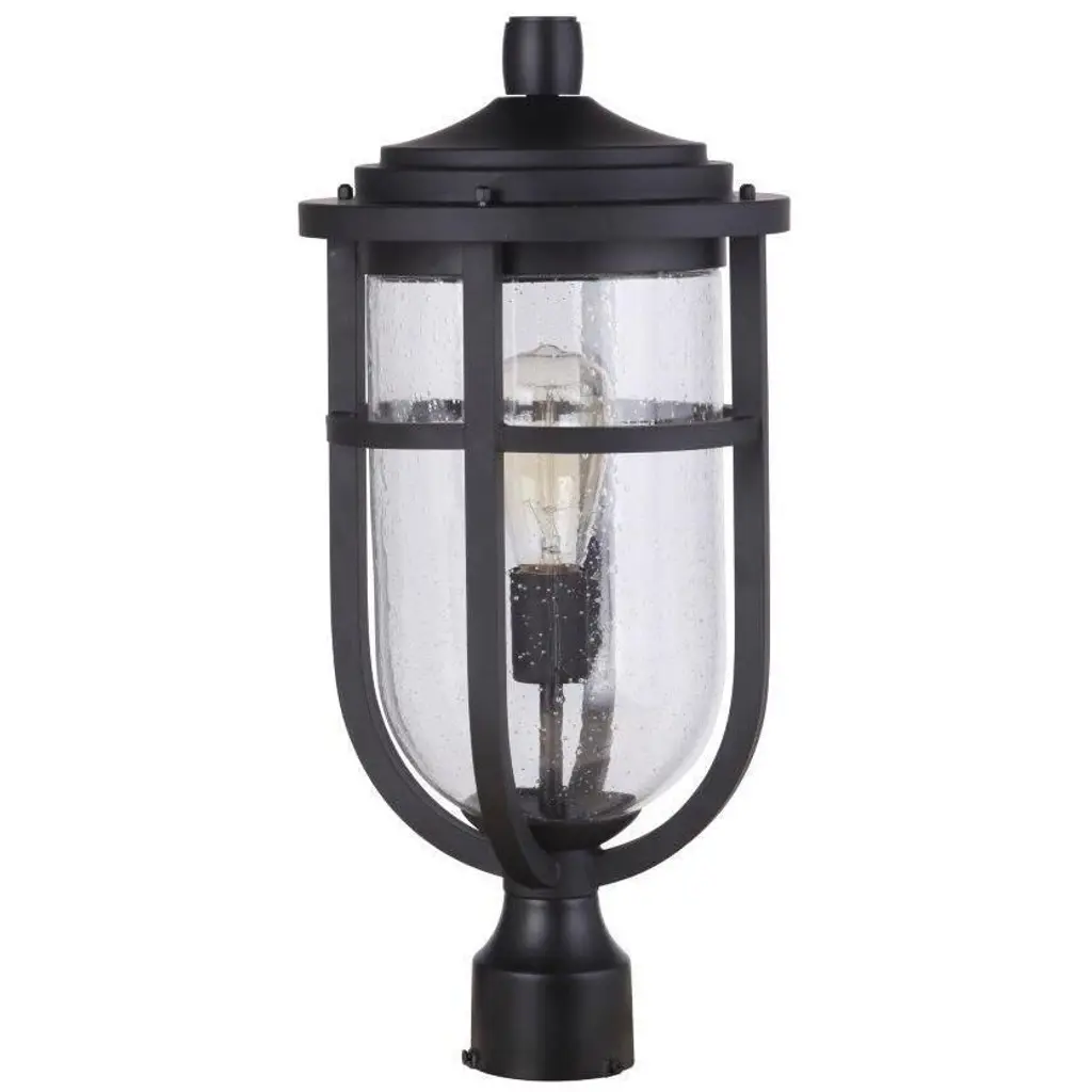 With an ornate base and romantic lantern-inspired boxy frame, the Sheridan one-light outdoor post mounted fixture raises the elegance level of an exterior residential or commercial space. Embrace a village motif with a hint of nautical historical flavor with black finish steel construction offering protection against weather elements and a tasteful aesthetic perfect for a custom home. A romantic seedy glass cylinder shade creates a softening effect. Dimmable: Yes Shade Included: Yes