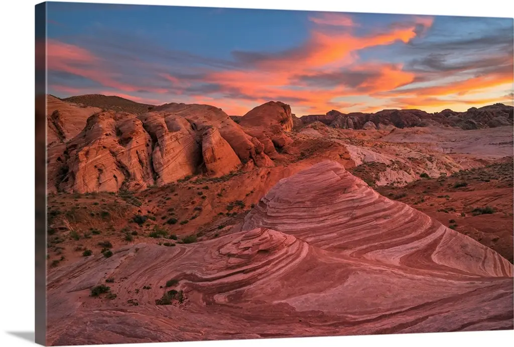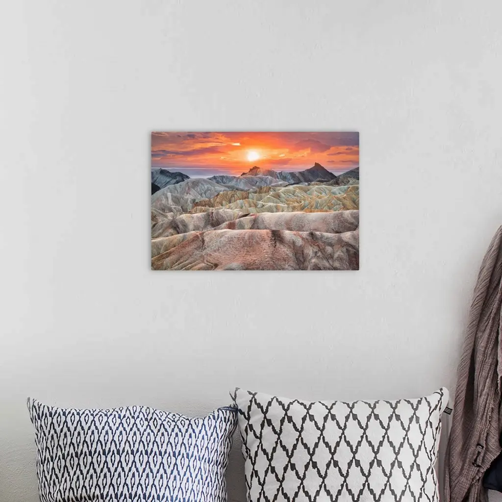 Photograph of the rolling landscape of Zabriskie Point at sunset in Death Valley National Park in California, United States.