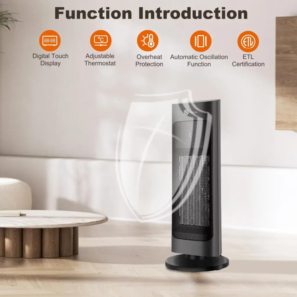 Zachvo 1500w Oscillating Ceramic Tower Heater, Remote Control, Timer, Overheat & Tip-over Protection