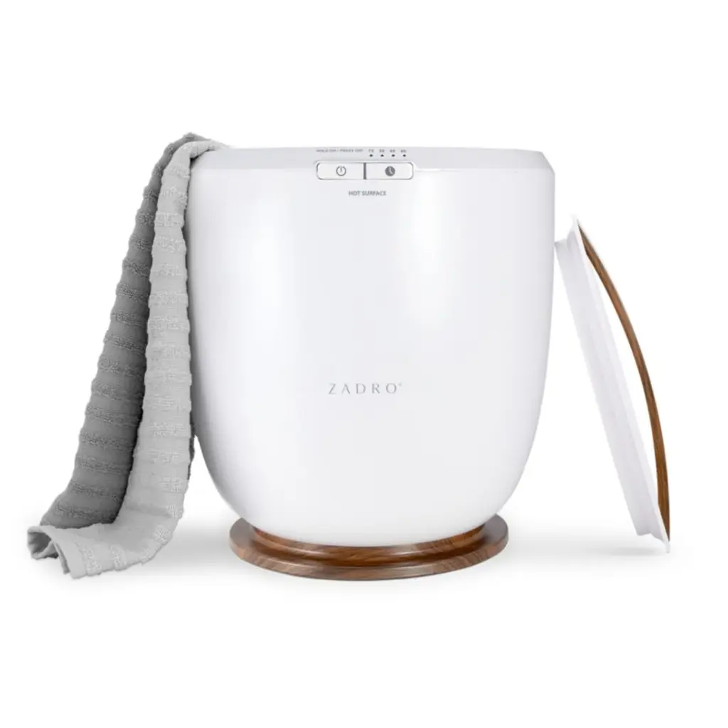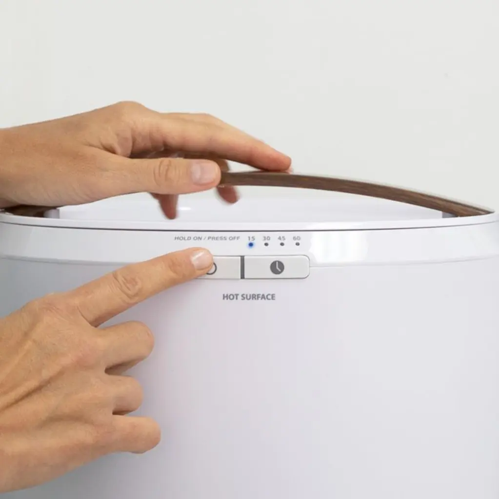 No longer a luxury reserved to spas, warmed towels are yours every day with this ingenious towel warmer. Choose from four timer settings up to 60 minutes to have your towel heated to the perfect temperature as you step out of the bath or shower. The towel warmer accommodates a 40"x70" bath towel, and you can also use it to warm up robes, socks and pajamas for nonstop coziness. Lightweight and freestanding, the bucket-style appliance has a small footprint and coordinates well with bath decor thanks to its neutral white exterior. Faux wood details add organic warmth. The countertop towel warmer shuts off automatically once the countdown is complete, and the extra-long cord stores underneath for a neat look when not in use.