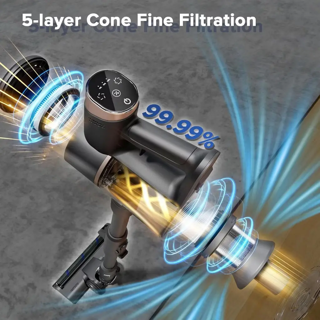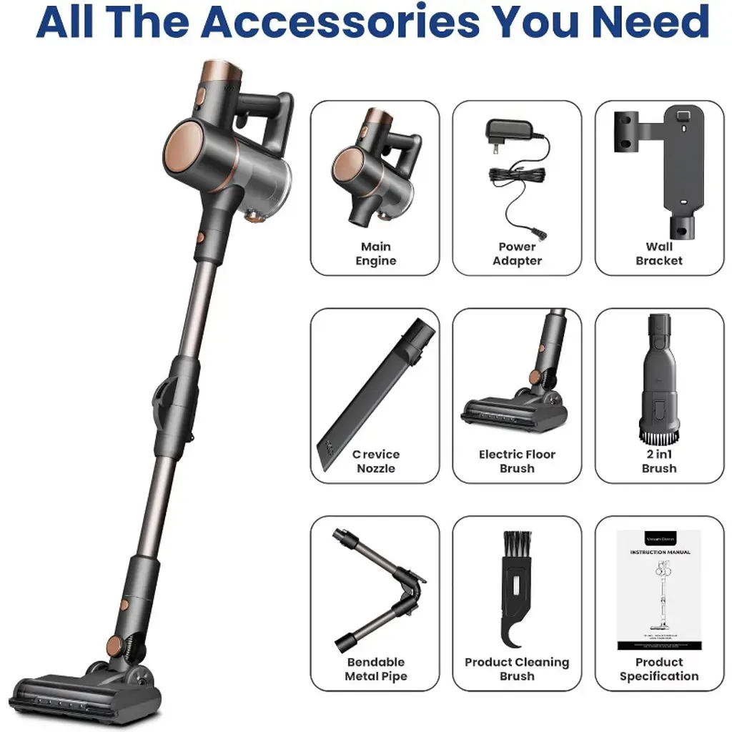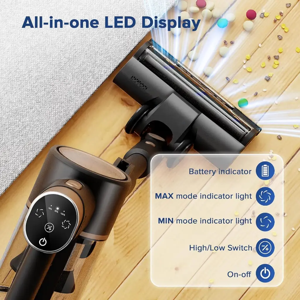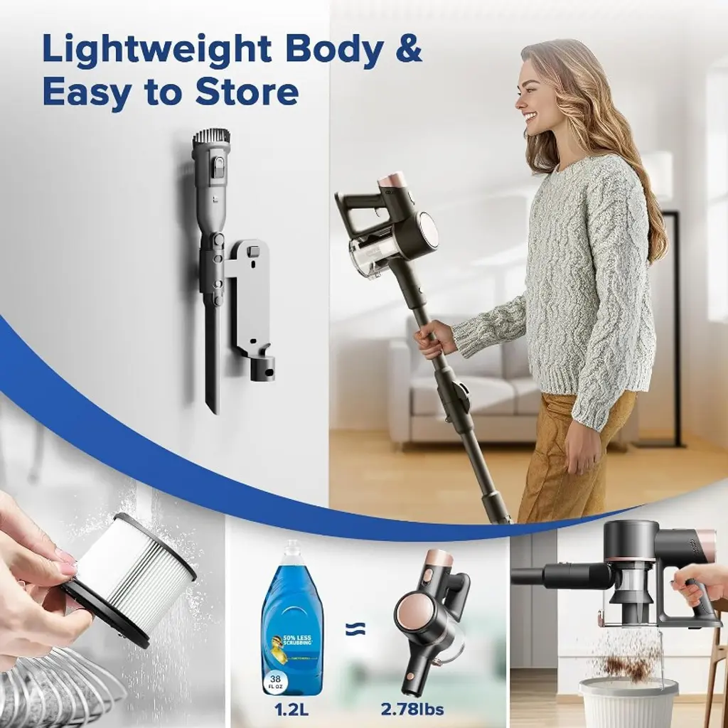 Powerful cordless vacuum with 30KPa suction & 40min runtime. Lightweight, anti-tangle design perfect for pet hair, carpets & hard floors. Easy rechargeable cleaning!